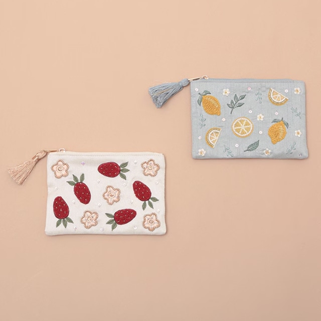 フルーツ刺繍ポーチS