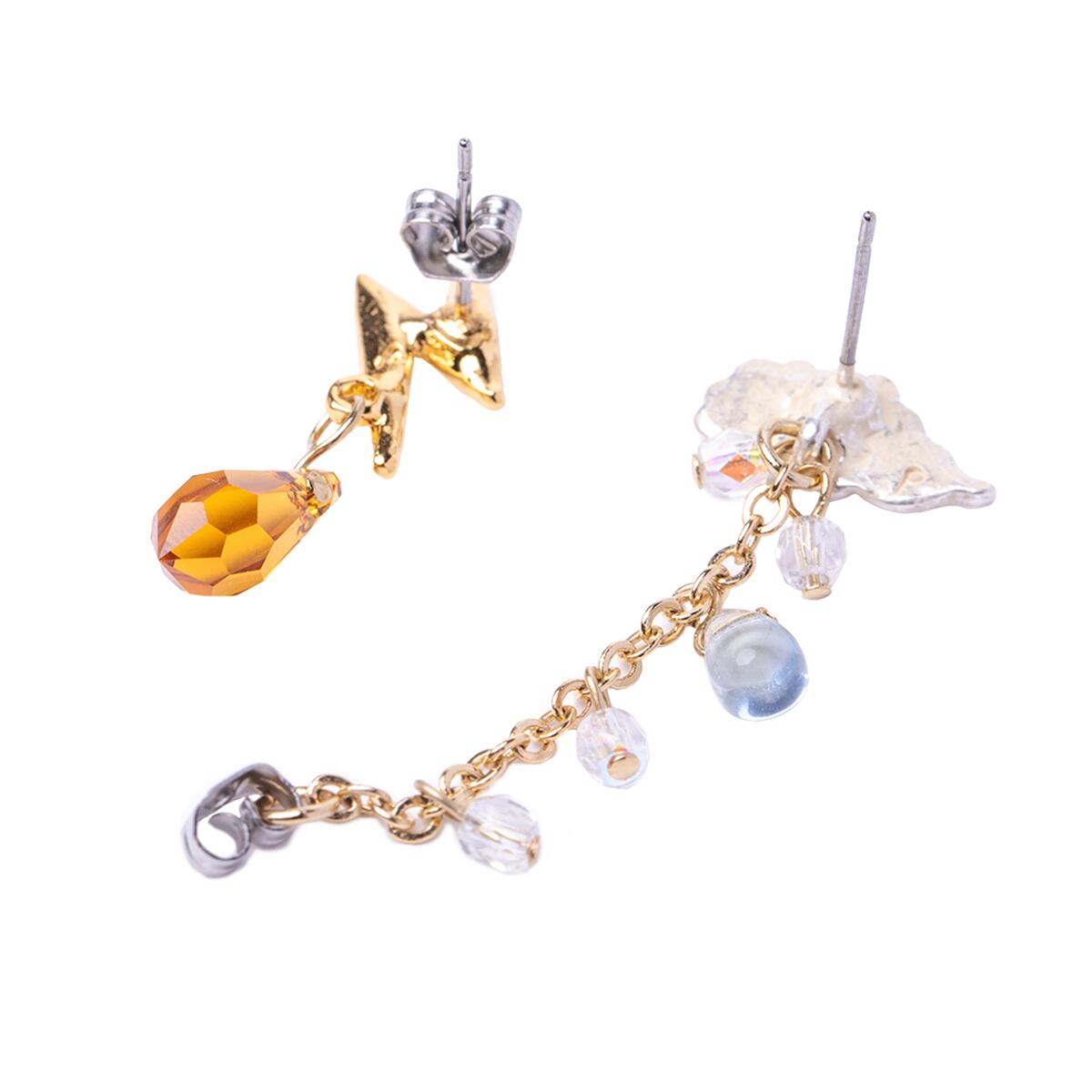 雨雲とピアスキャッチはチェーンでつながっており、奥行きのあるデザインをお楽しみいただけます。