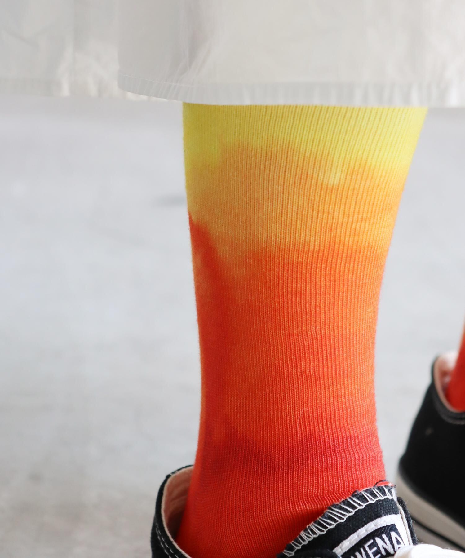 夕焼けの街並みに染まる空の色をイメージしたクルーソックス。鮮やかな色合いでコーディネートのポイントになります。