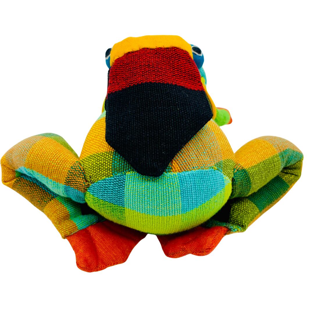 まるで本物みたいに躍動感のあるカエルのぬいぐるみです。