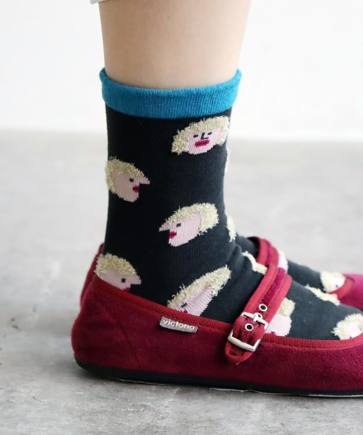 ふさふさヘアーがなんとも可愛らしいクルーソックス。