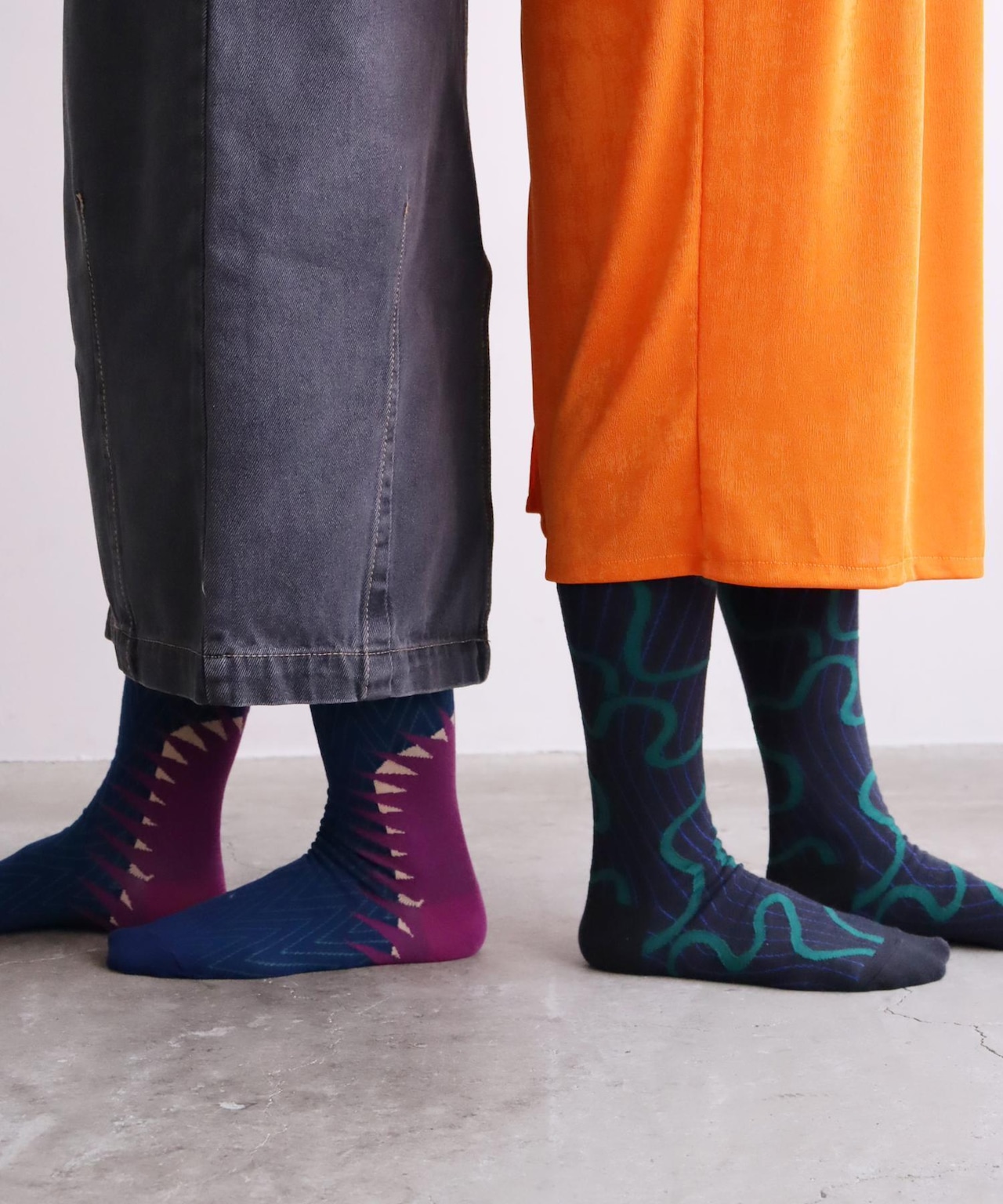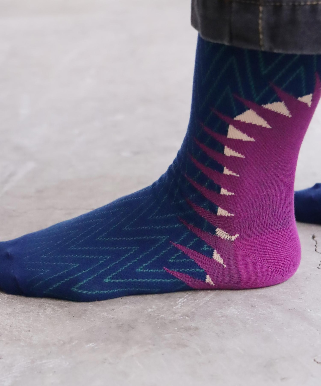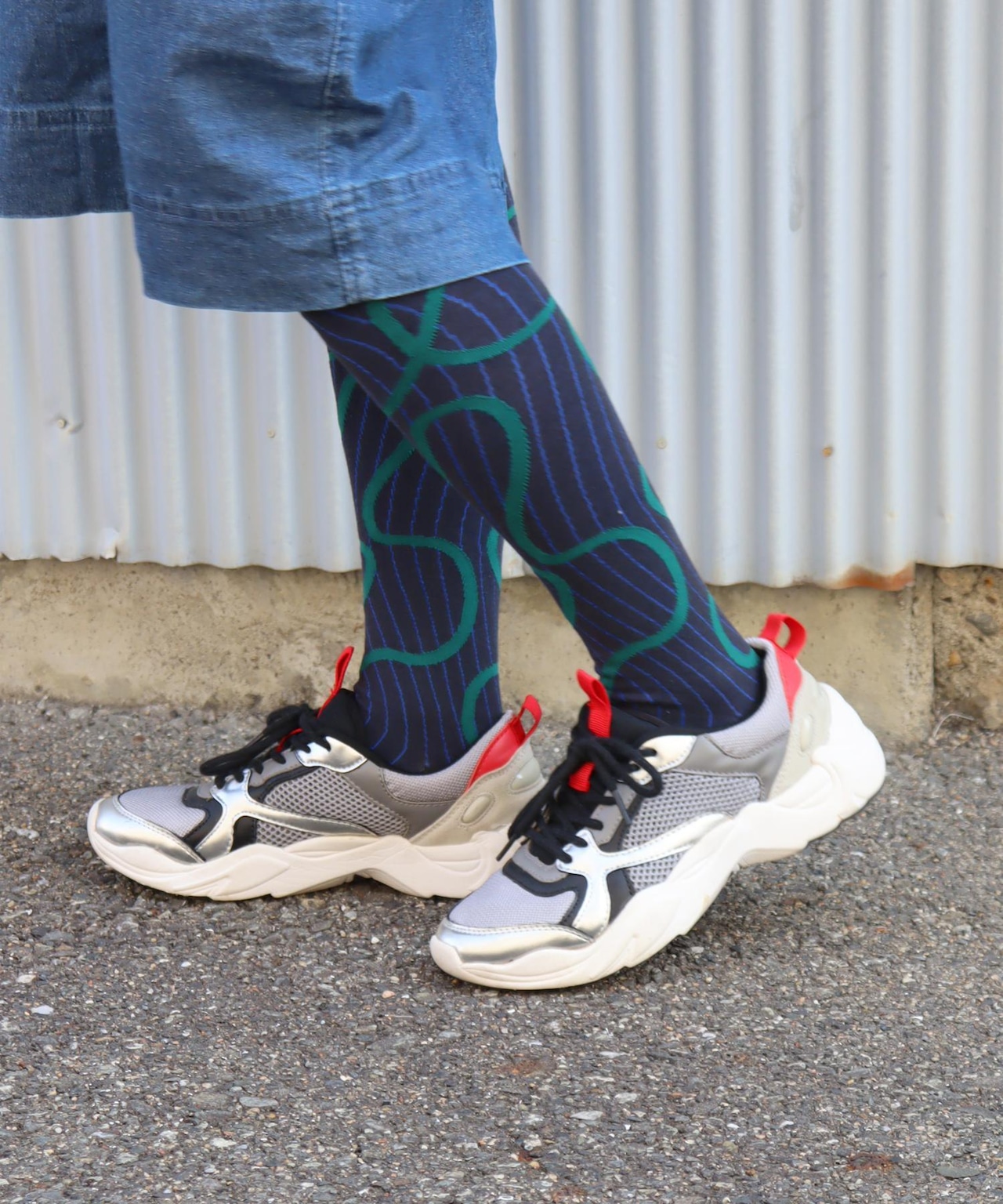 少しダークな印象があるハイソックスです◎全体的に暗めの配色なのでコーディネートに締りが出そうです◎