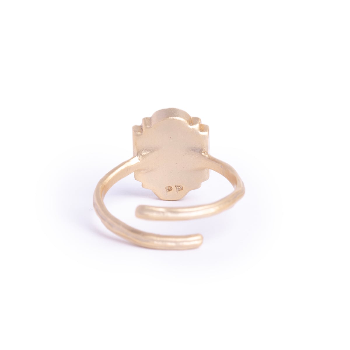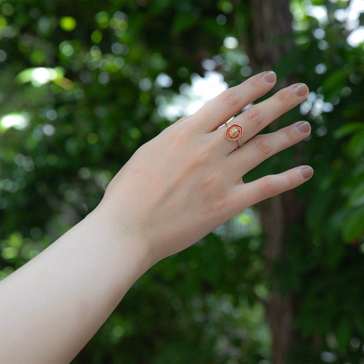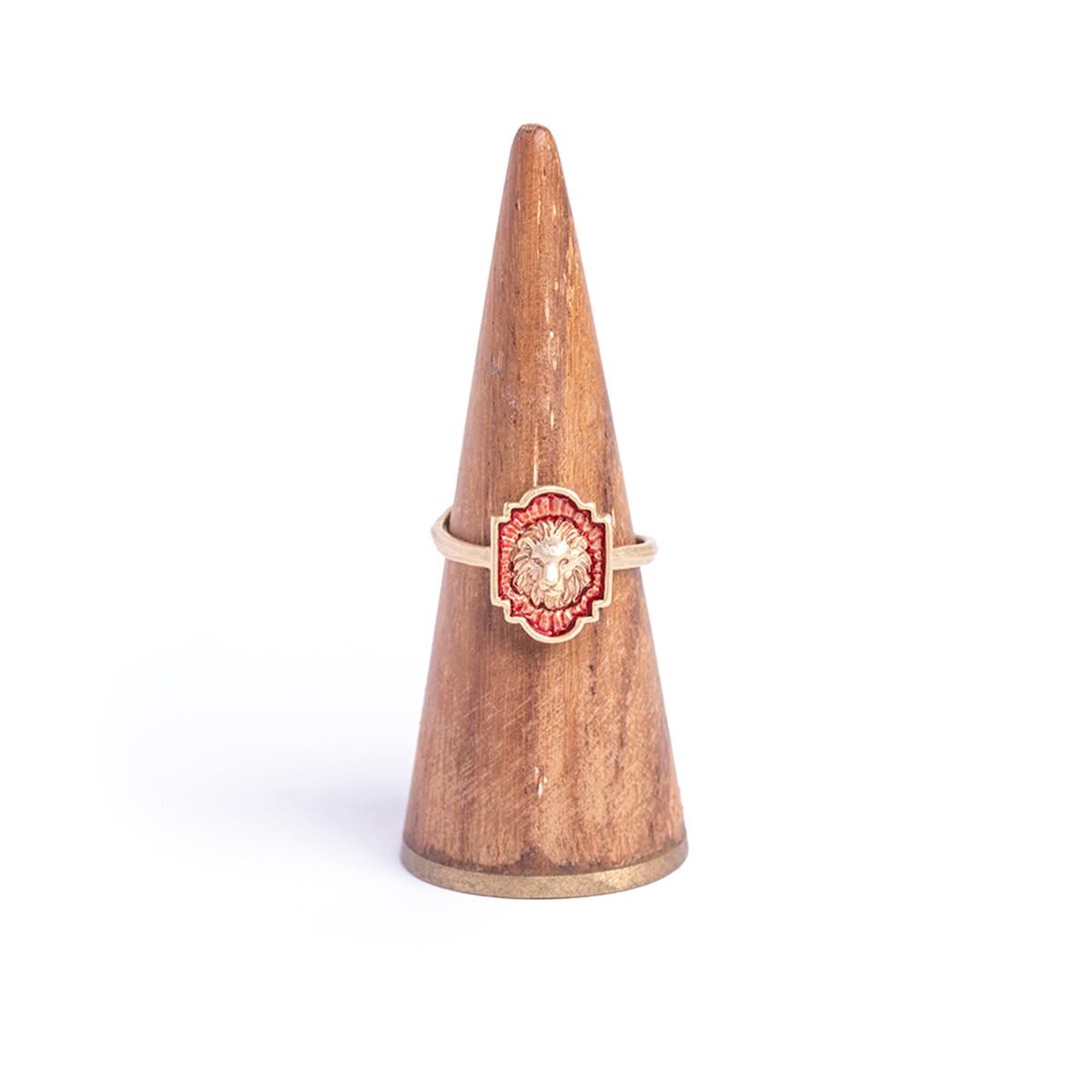 ライオンのエンブレムがモチーフのリング。王者の風格を感じさせるレッドとゴールドを基調としてデザインされています。