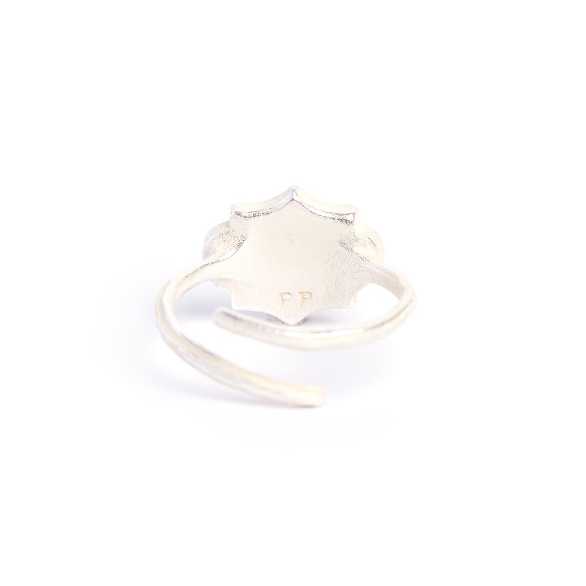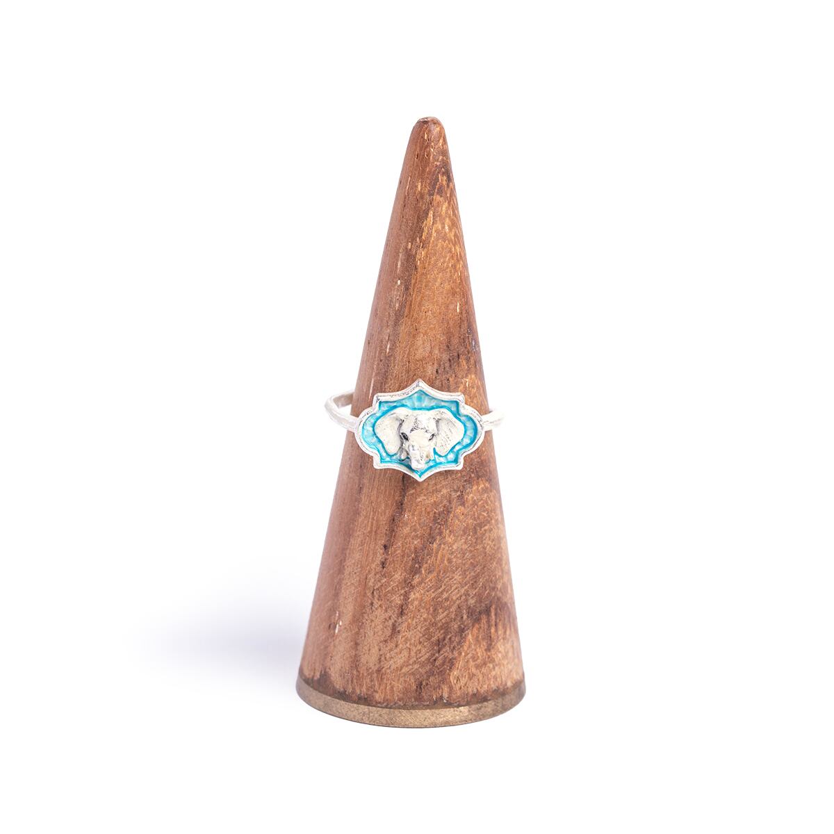 ゾウのエンブレムがモチーフのリング。ゾウが水浴びを楽しむ姿をイメージした、水色とシルバーを基調とした色合いでデザインされています。