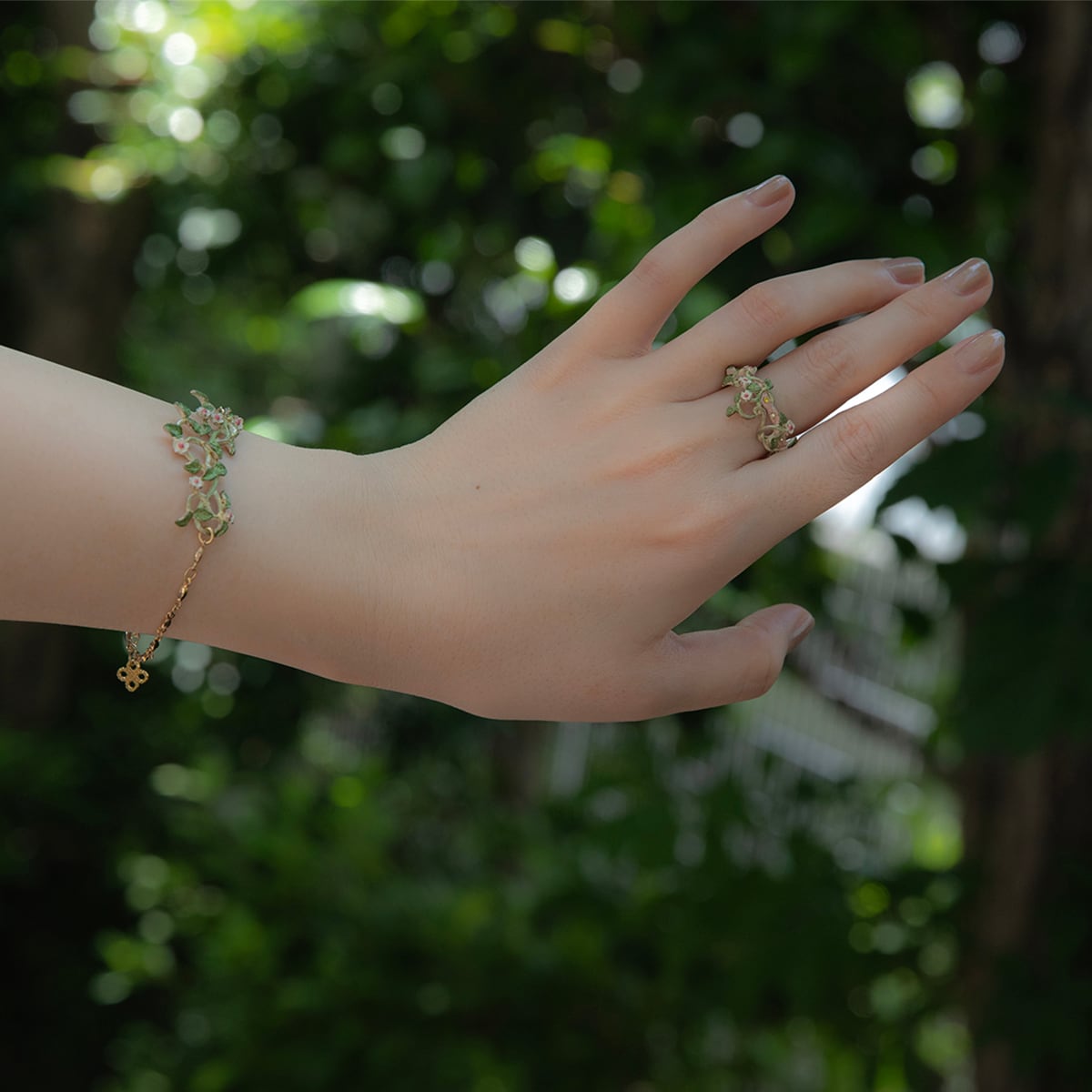 緩やかなツルのラインが優雅なサネカズラのリングです。可憐で可愛らしい印象を与えてくれます。