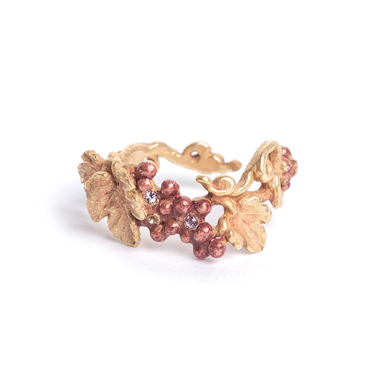 芳醇な香りを思わせるブドウをモチーフにしたリングです。深みのある色合いが魅力のアイテムです。