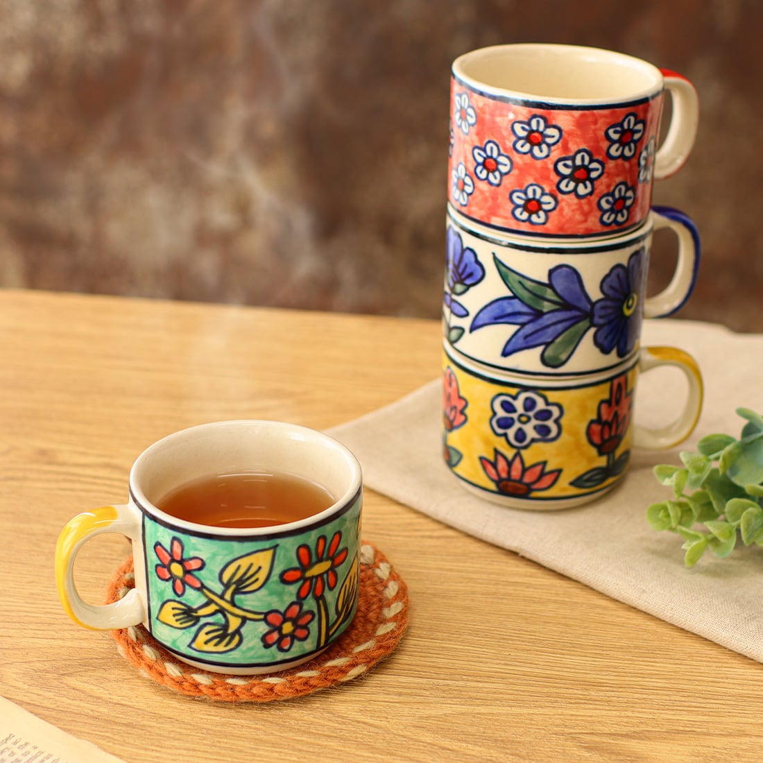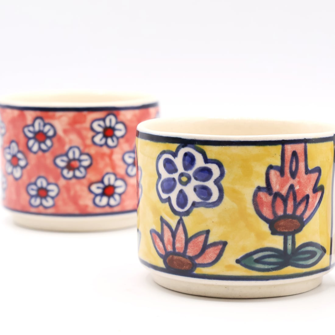 インドの職人がハンドペイントでひとつひとつ丁寧に描き、お作りしたものです。そのため、柄に個体差や、色の濃淡の差がございますが、こちらはハンドメイドの特徴としてご了承下さい。また、小さなキズ・突起・ピンホールが見られる場合がございます。