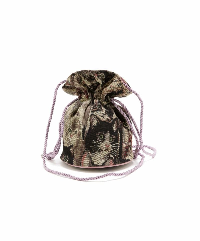 アニマル柄が印象的な巾着型ショルダーバッグ。柔らかいレーヨンコードを使用しているので肩掛け、手持ちでも快適に使えます◎