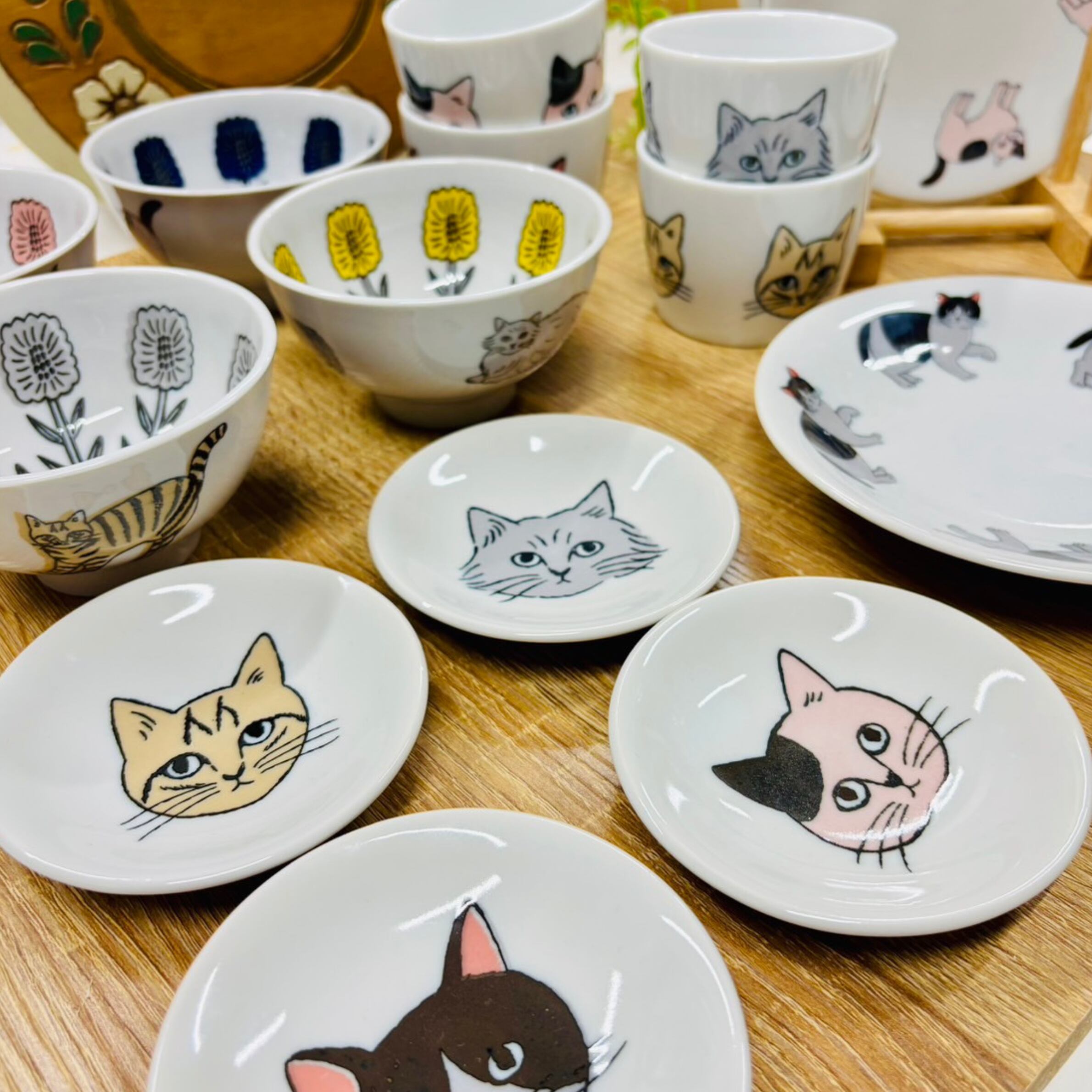 プレートの中央には、松尾ミユキさんの描くほっこりとした表情のネコたち。
