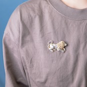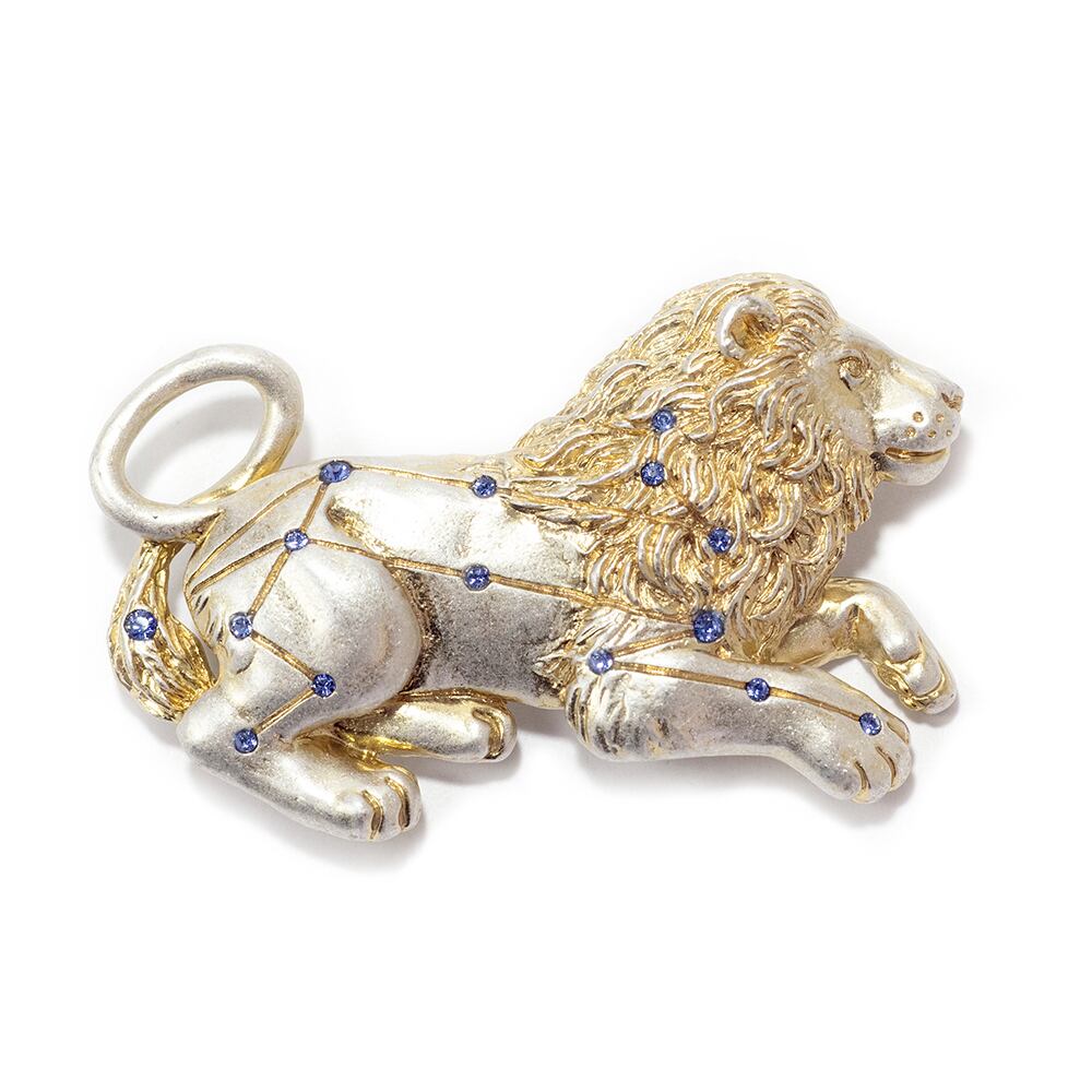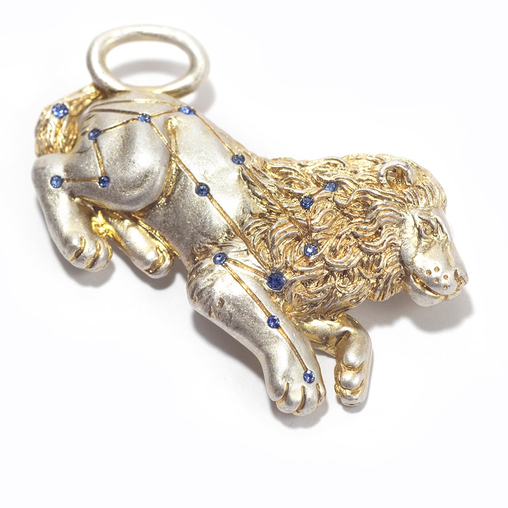 夜空に輝くしし座のブローチ。輝くシルバーの体に鬣や尻尾が黄金色に輝くよう造形にこだわっています。きらきらとブルーに輝く星々が幻想的★バッグやお洋服などにあわせてお楽しみください♪
