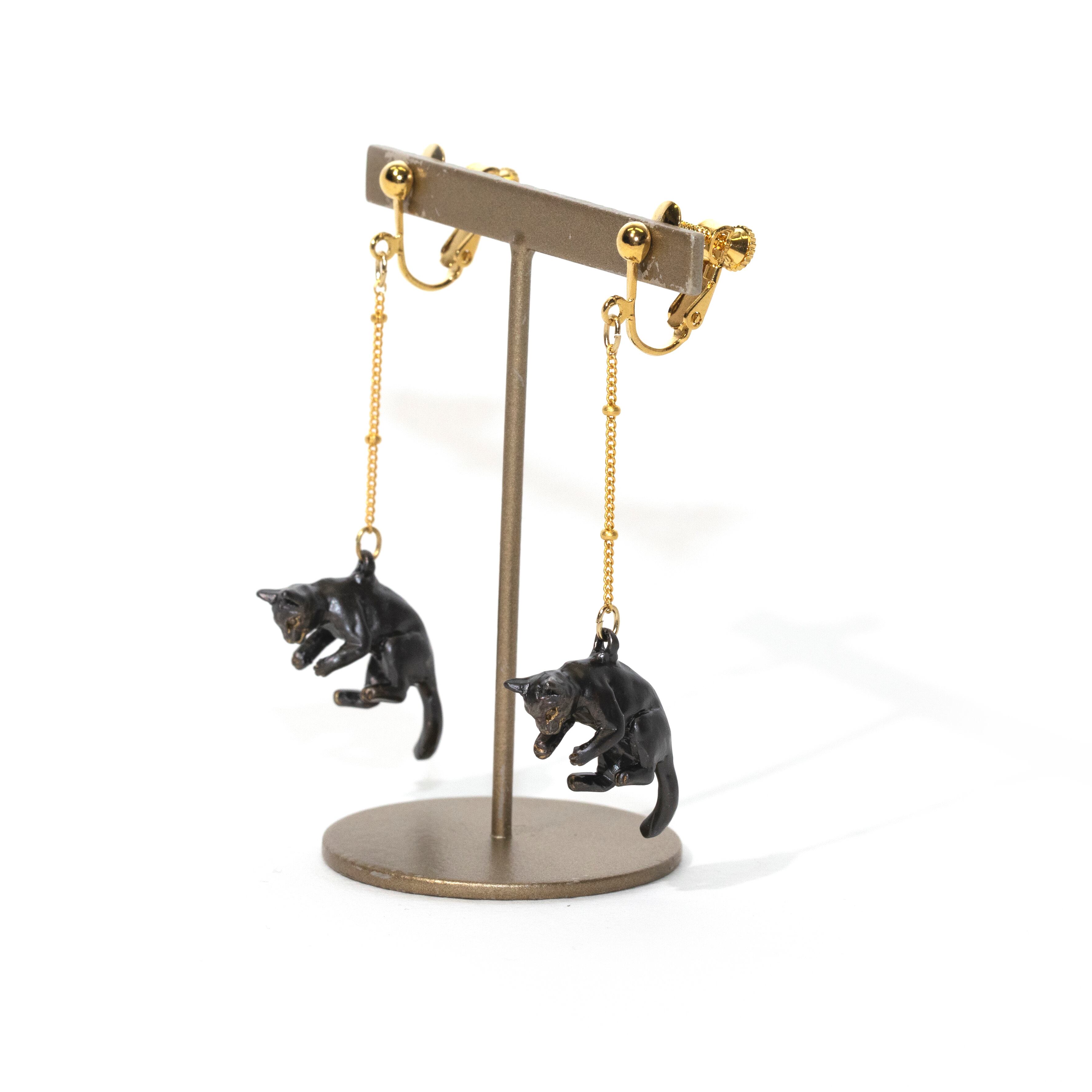 後ろどんな体勢から落下しても上手に足で着地ができてしまう猫の習性、そんな瞬間から着地2秒前を切り取った様子がイヤリングになりました。