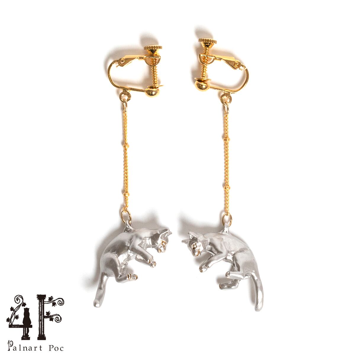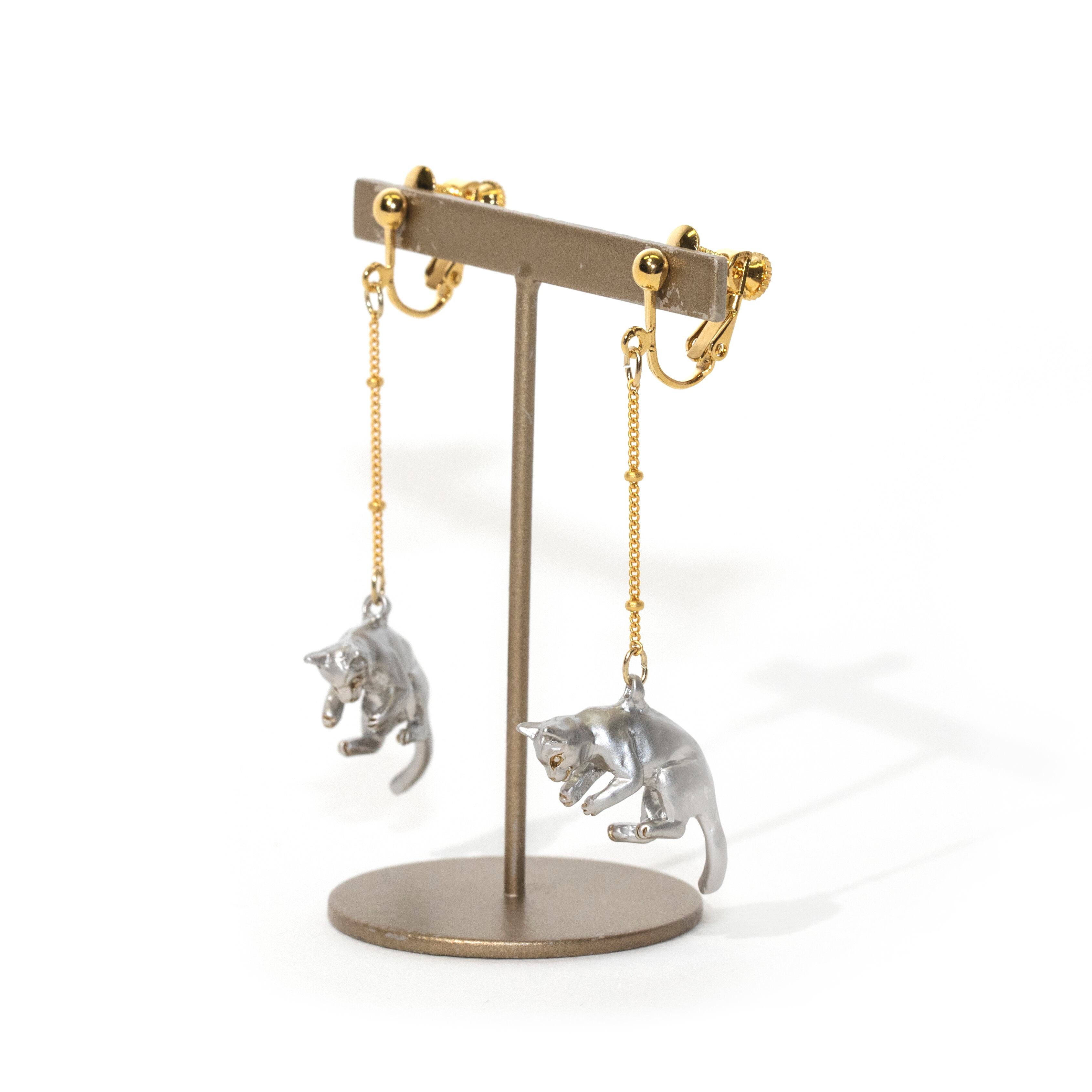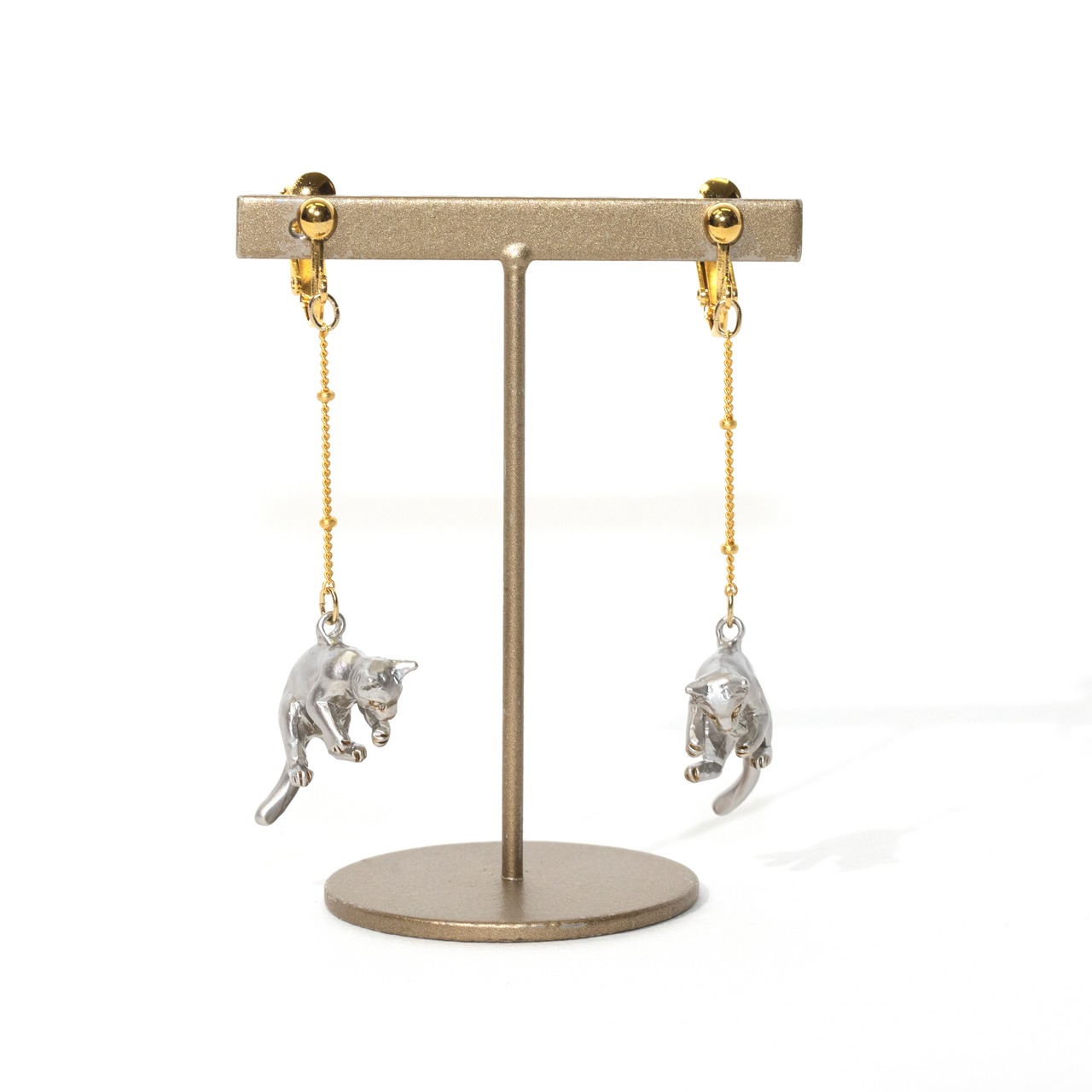 どんな体勢から落下しても上手に足で着地ができてしまう猫の習性、そんな瞬間から着地2秒前を切り取った様子がイヤリングになりました。