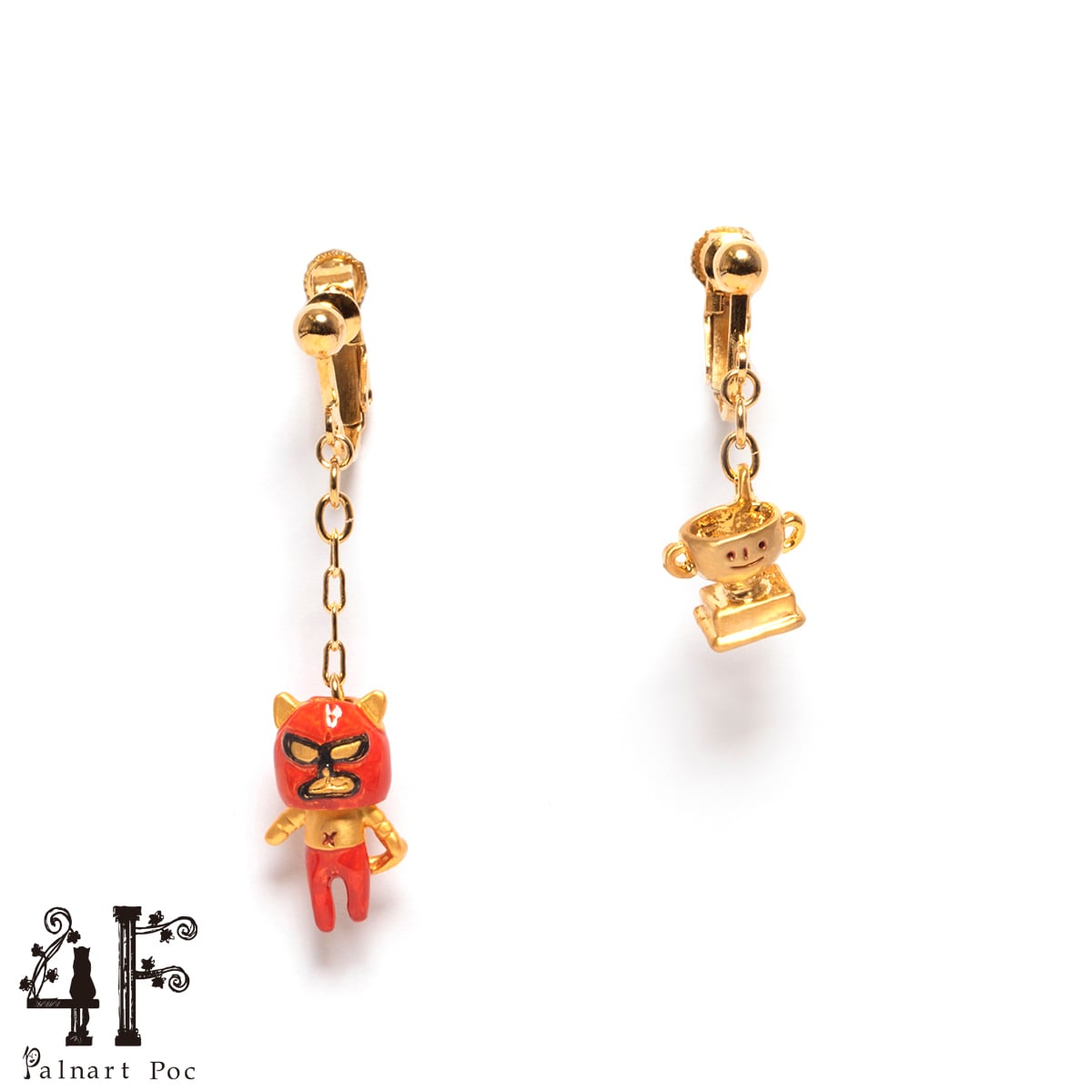 赤い覆面のネコレスラーの優勝記念でしょうか、優勝カップとセットになったイヤリングが登場しました。