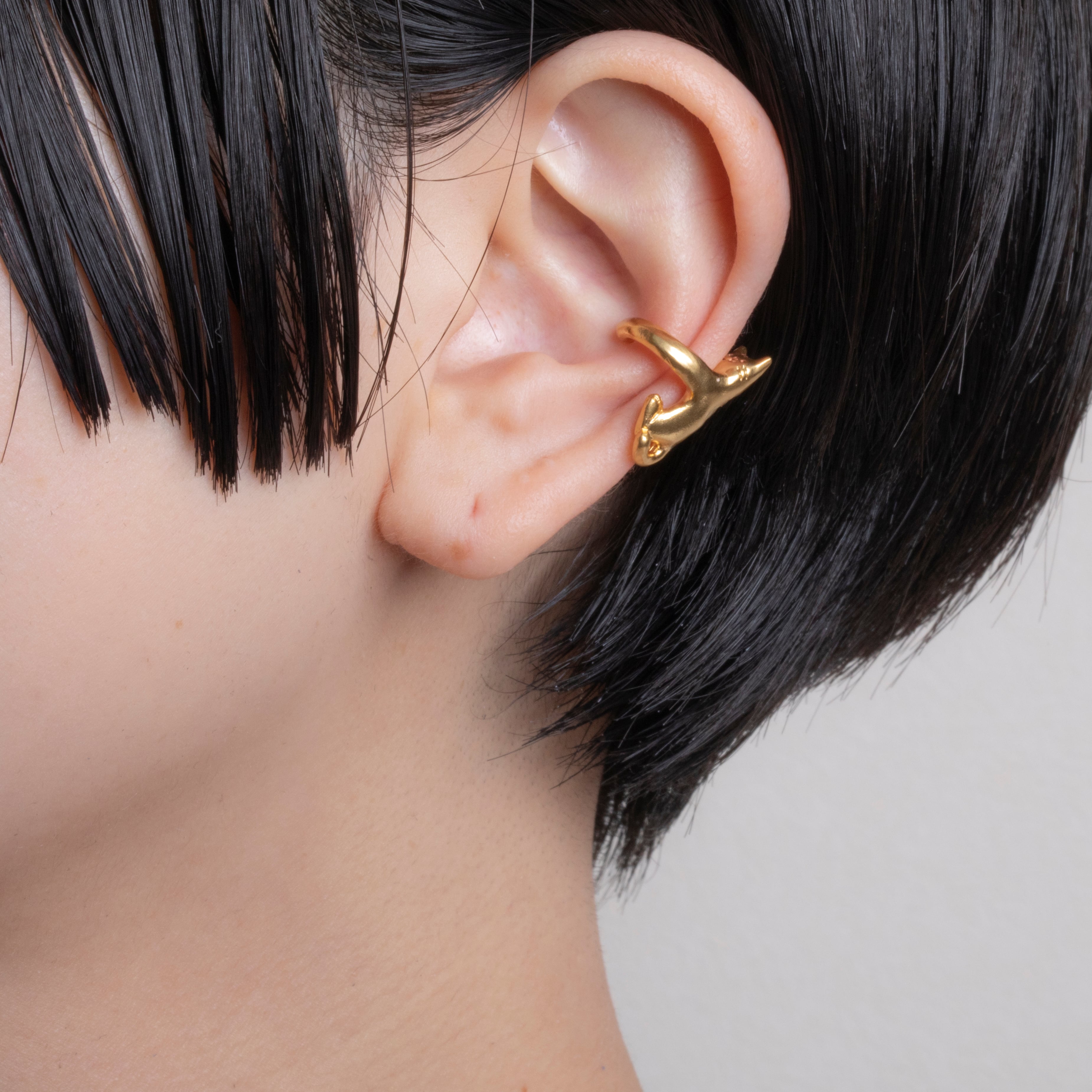 何か気になるものを見つけたようにチラ……っと耳元から様子を伺ってくる猫がかわいいイヤーカフ。