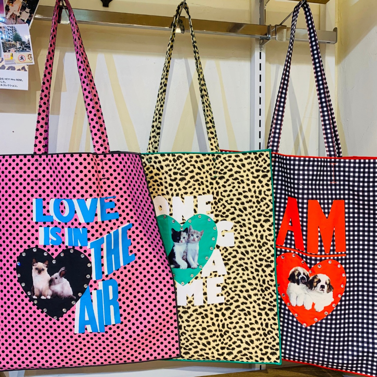 1枚仕立ての軽い使用感のトートバッグ。本体はオリジナル図案のフォトプリントに、HOTFIXラインストーン。