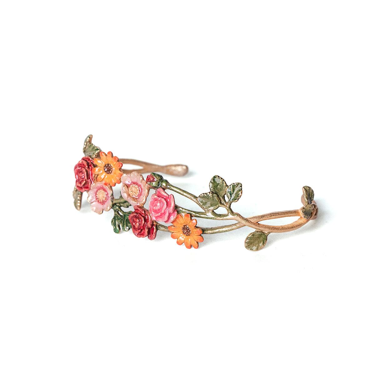 暖かな色味の可愛らしいブレスレットは、ちょっとしたお祝いに送られるミニブーケがモチーフ。