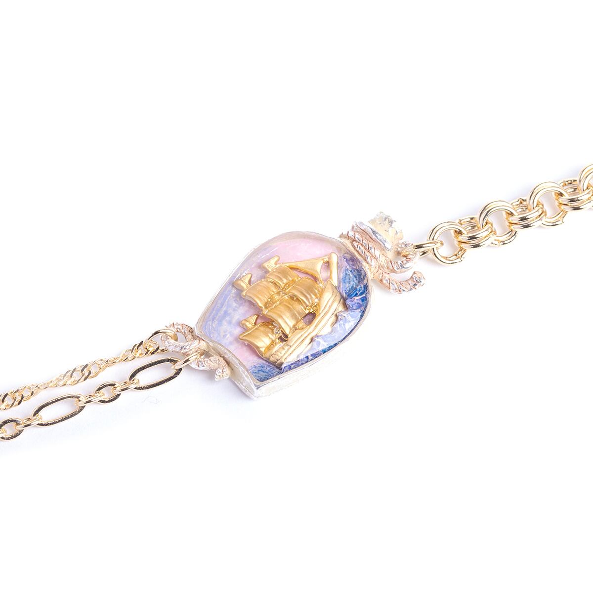 船の模型を瓶の中に閉じ込めた、ボトルシップのブレスレット。