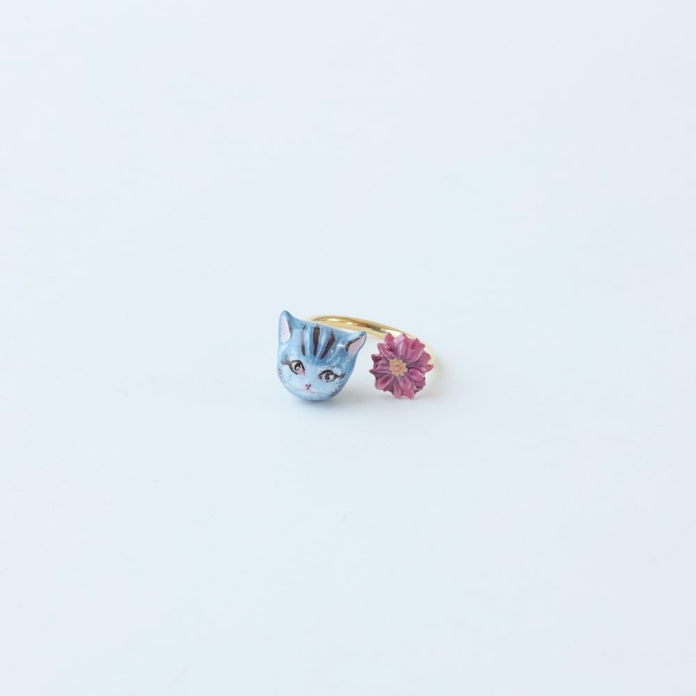 【Nathalie Lete】リング Two motifs ring Blue Cat