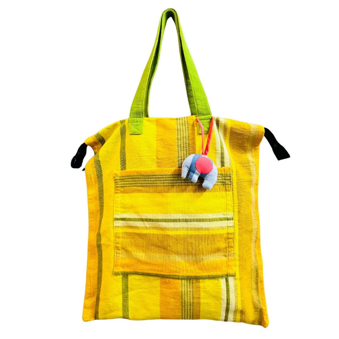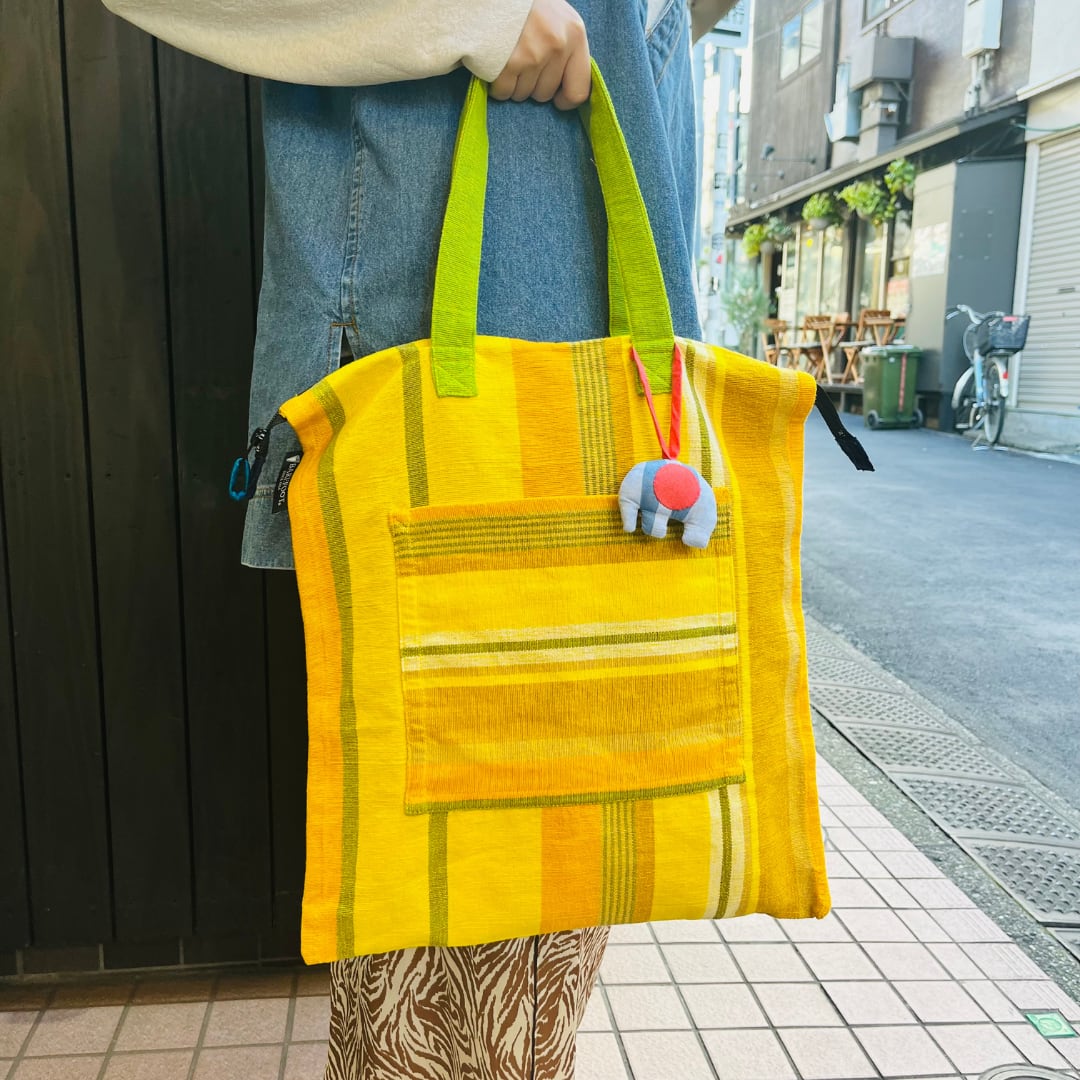 ゾウさんのチャームがついた大きなトートバッグです。