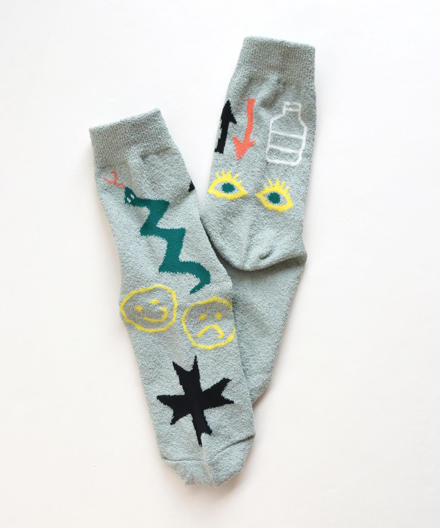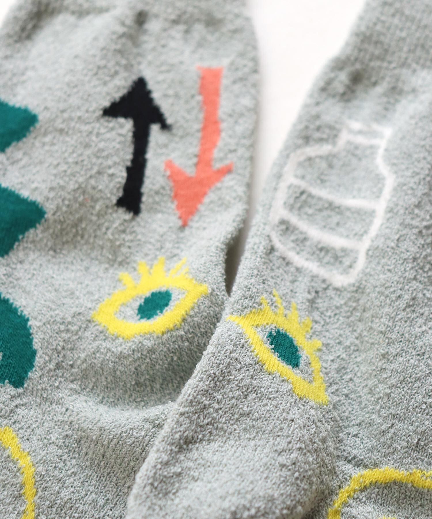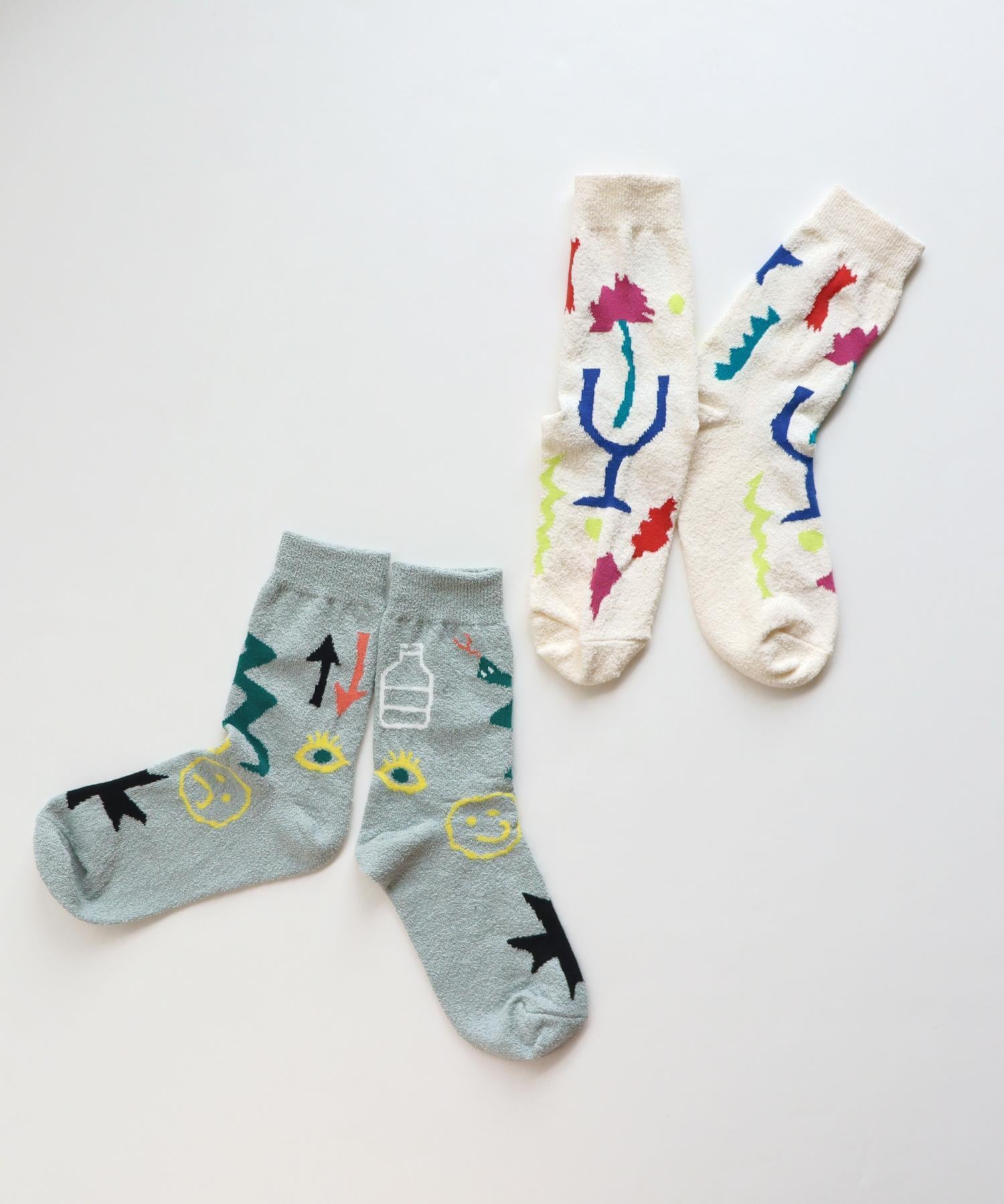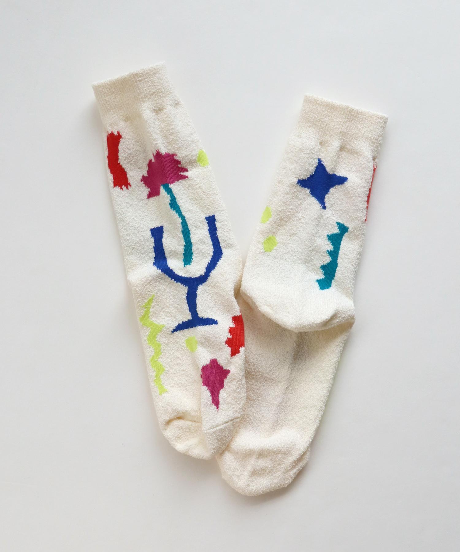 おもちゃ箱をひっくり返したみたいに、“好き”がごちゃ混ぜになった HAPPYなミックス柄 のソックスです。