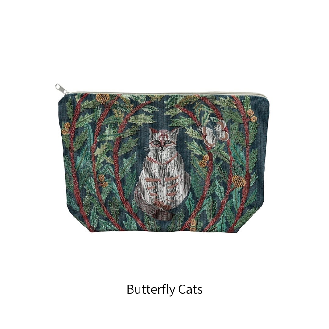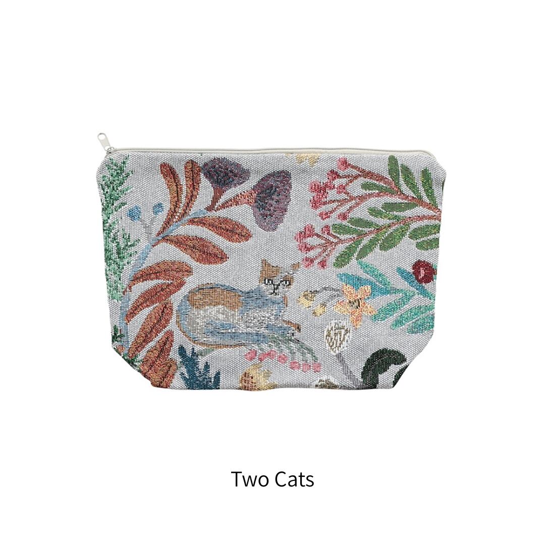 松尾ミユキさんによる、動物と植物の切り絵モチーフが広がる、ゴブラン素材のポーチです。