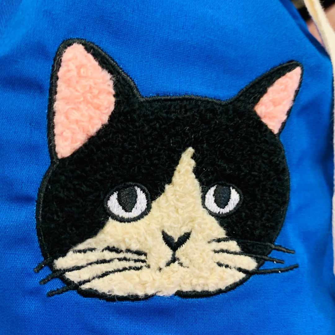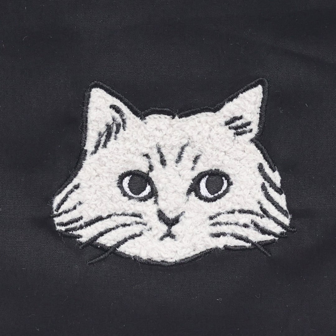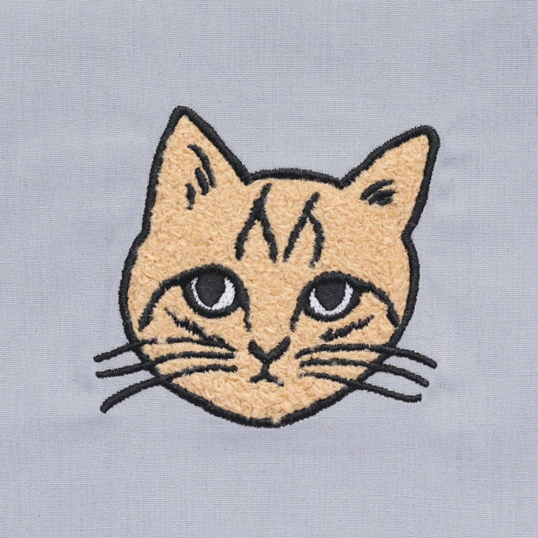 松尾ミユキさんの描く線画の猫を、モコモコとした刺繍で表現しました。