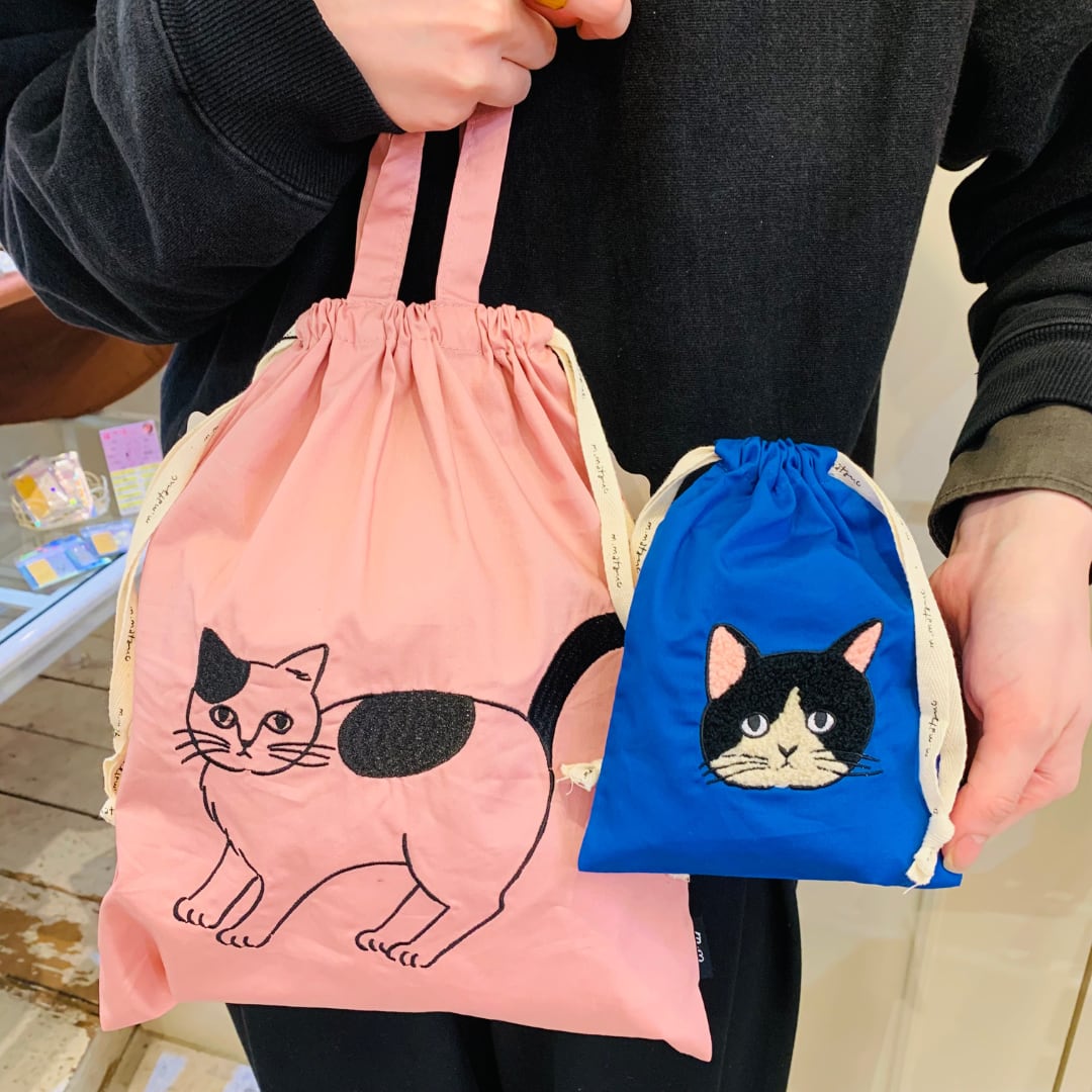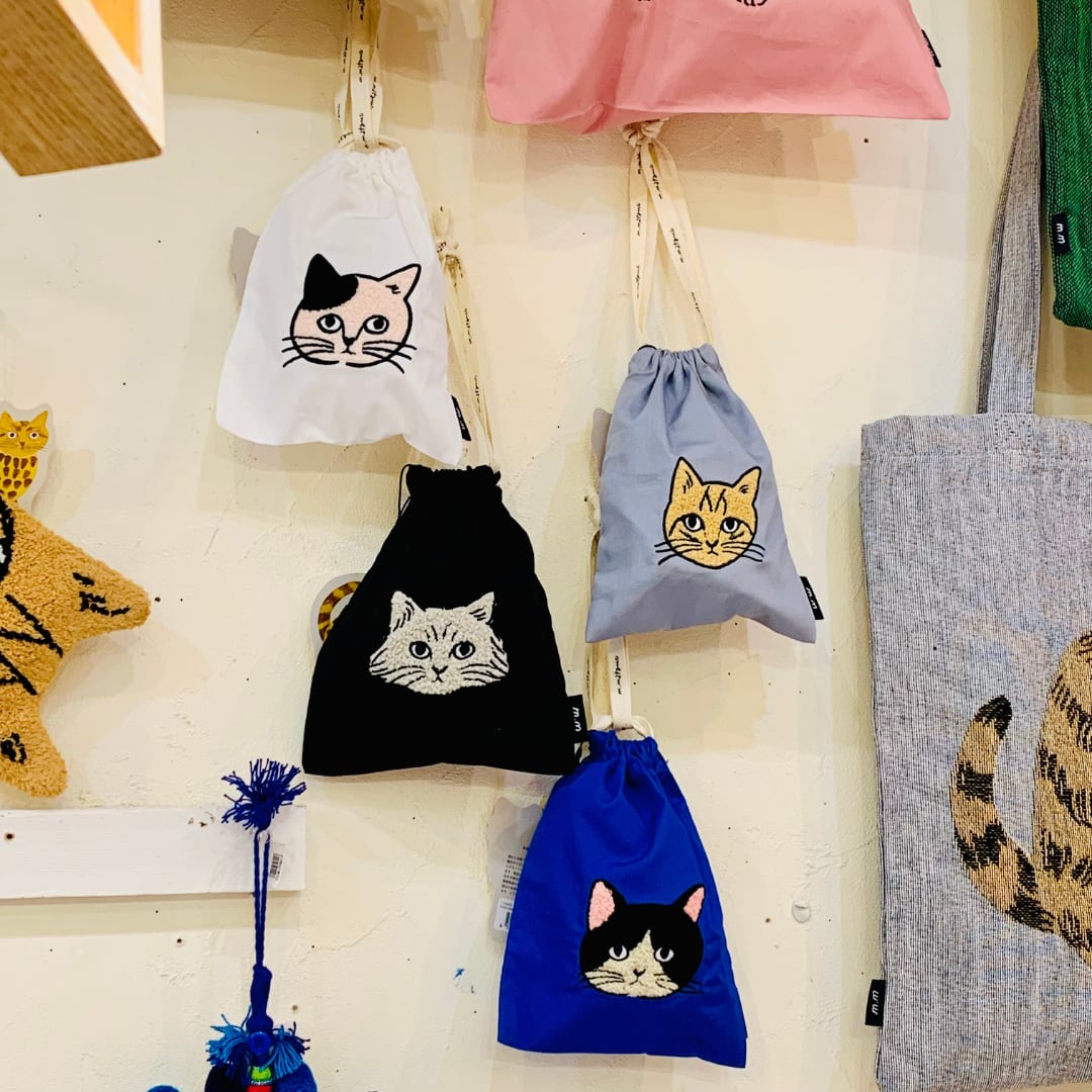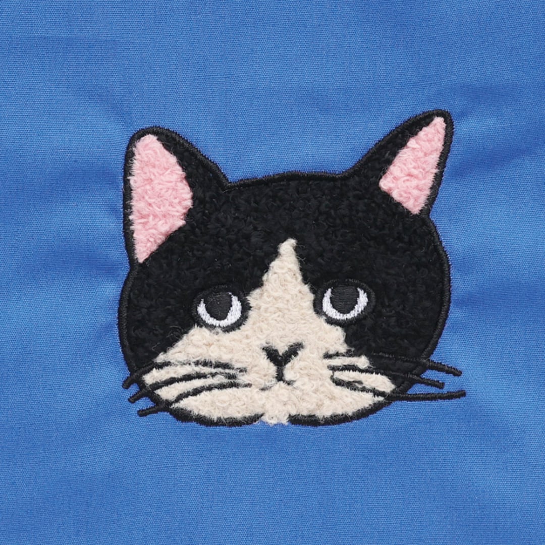 松尾ミユキさんの描く線画の猫を、モコモコとした刺繍で表現しました。