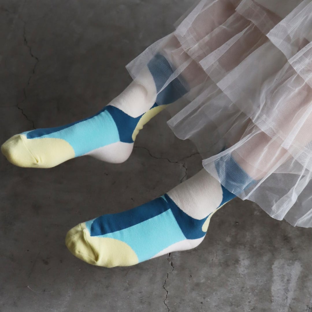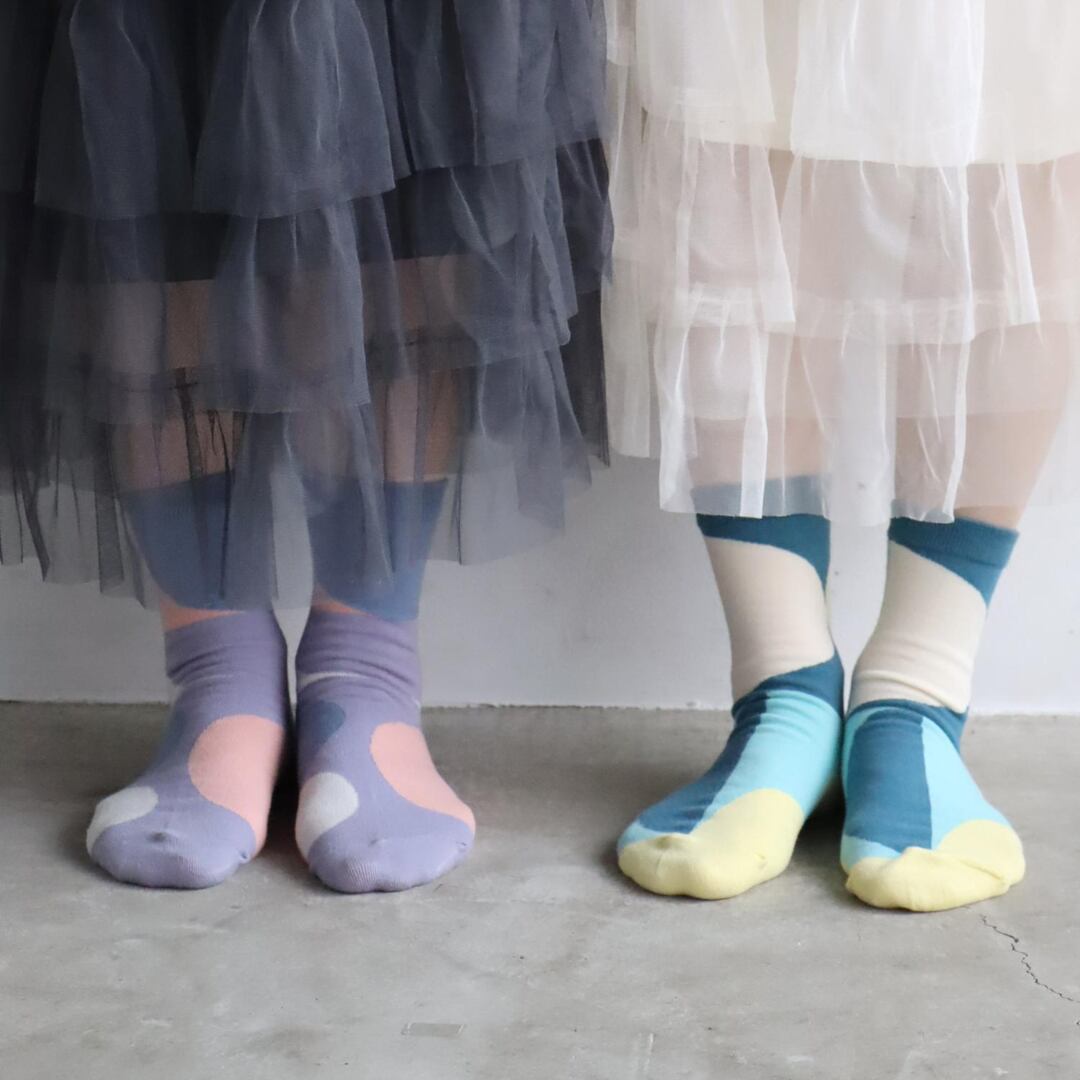 お昼や夕方に見える月をイメージした幻想的なソックス。