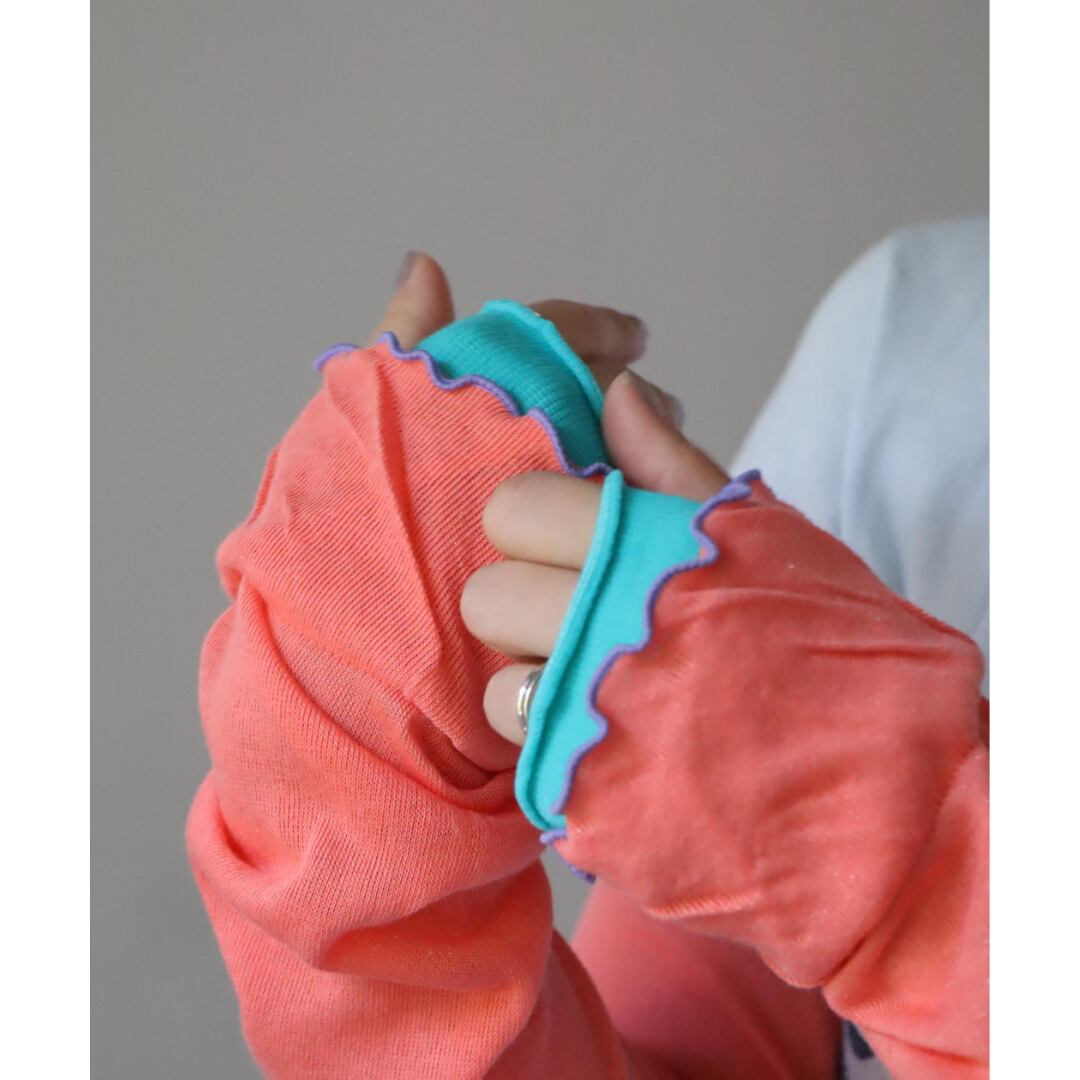 袖口がレイヤード風になっていて、こんなにカワイイアームカバーは