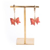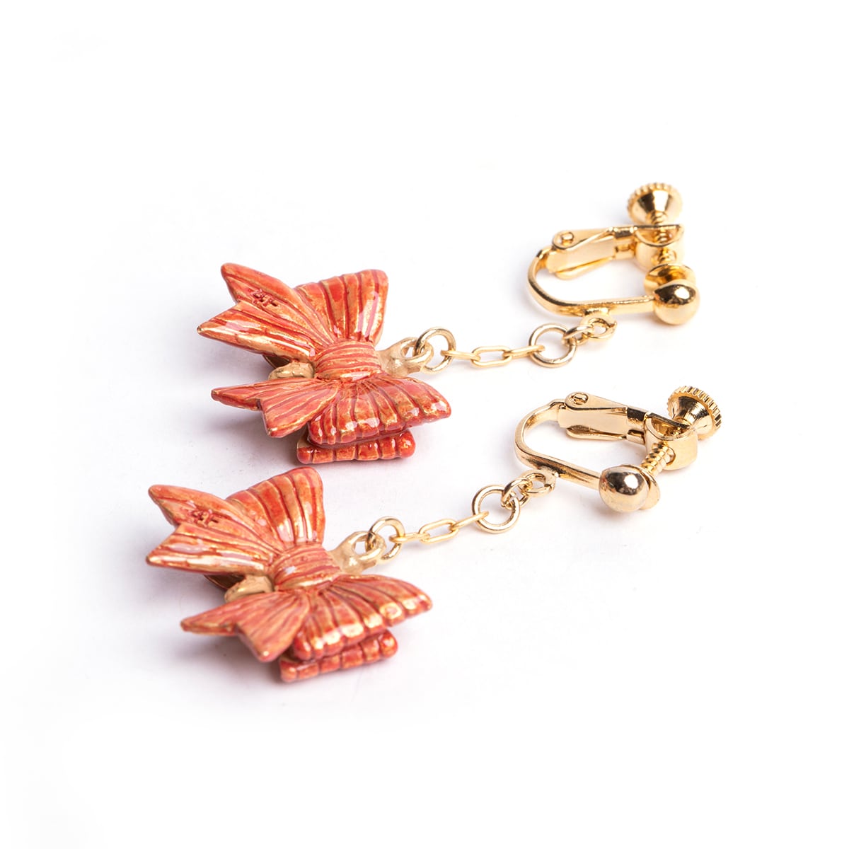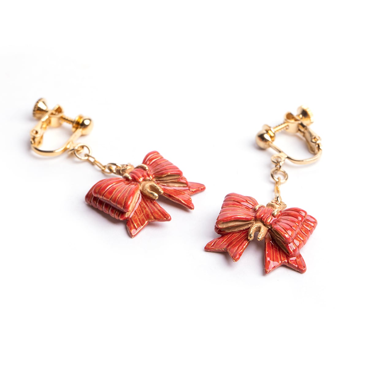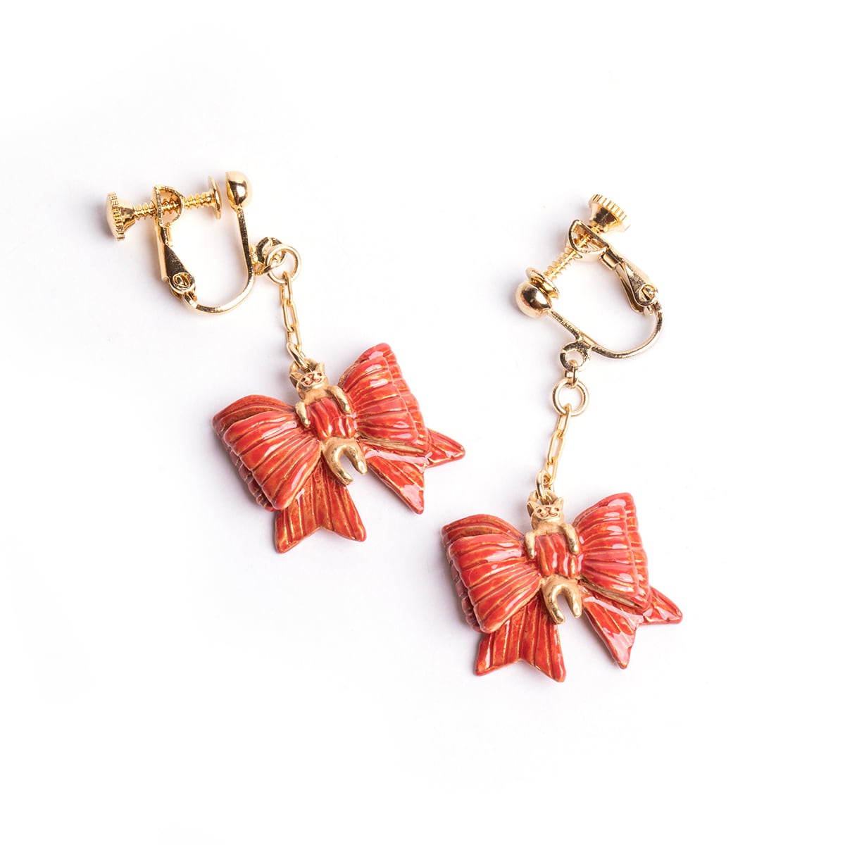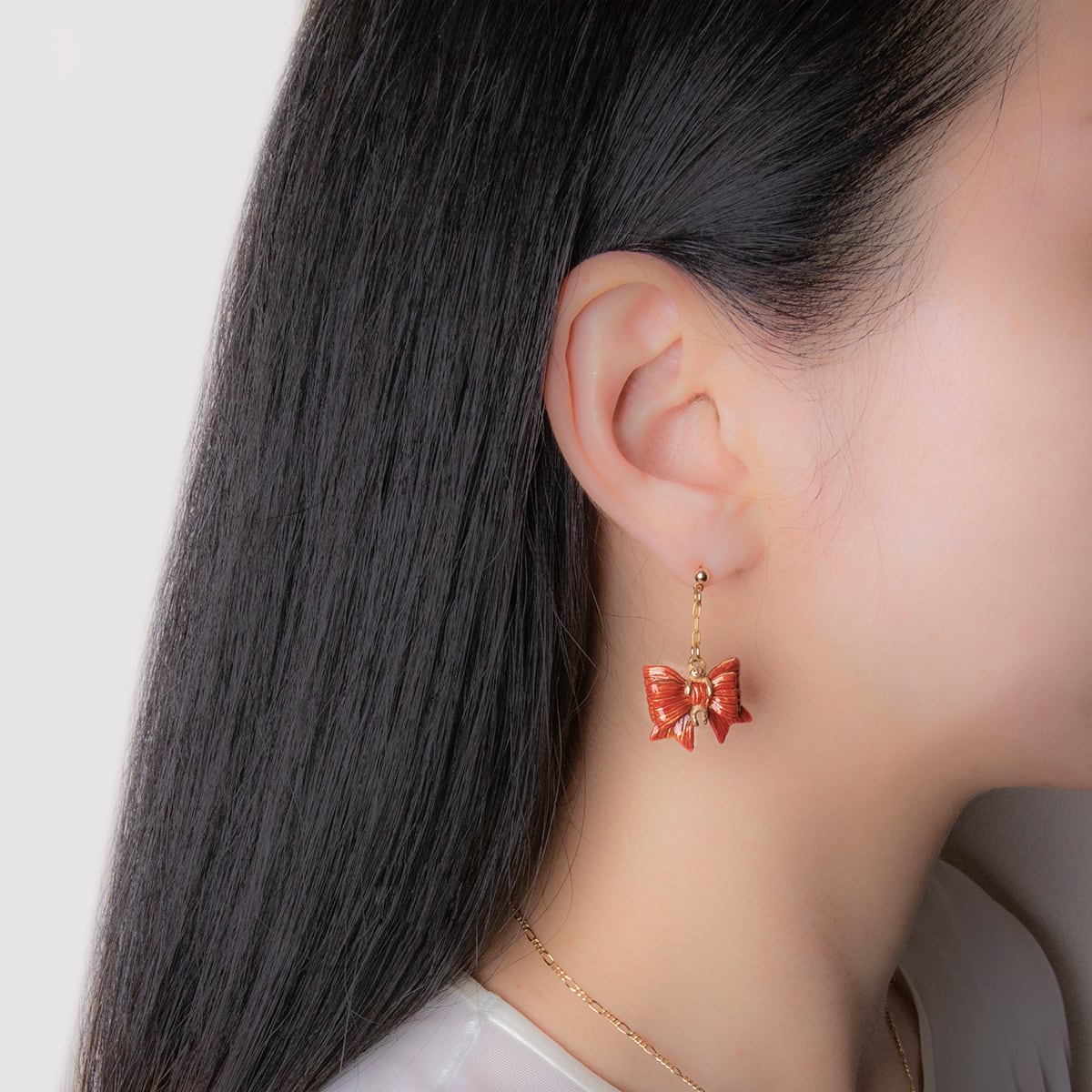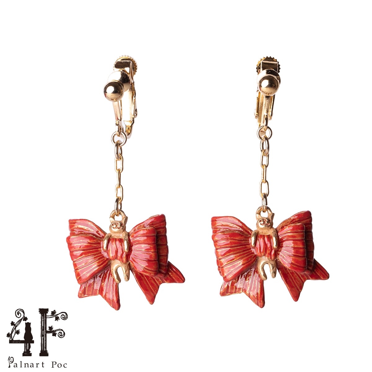 大きなリボンに包まれて綺麗にラッピングされた猫のイヤリング。