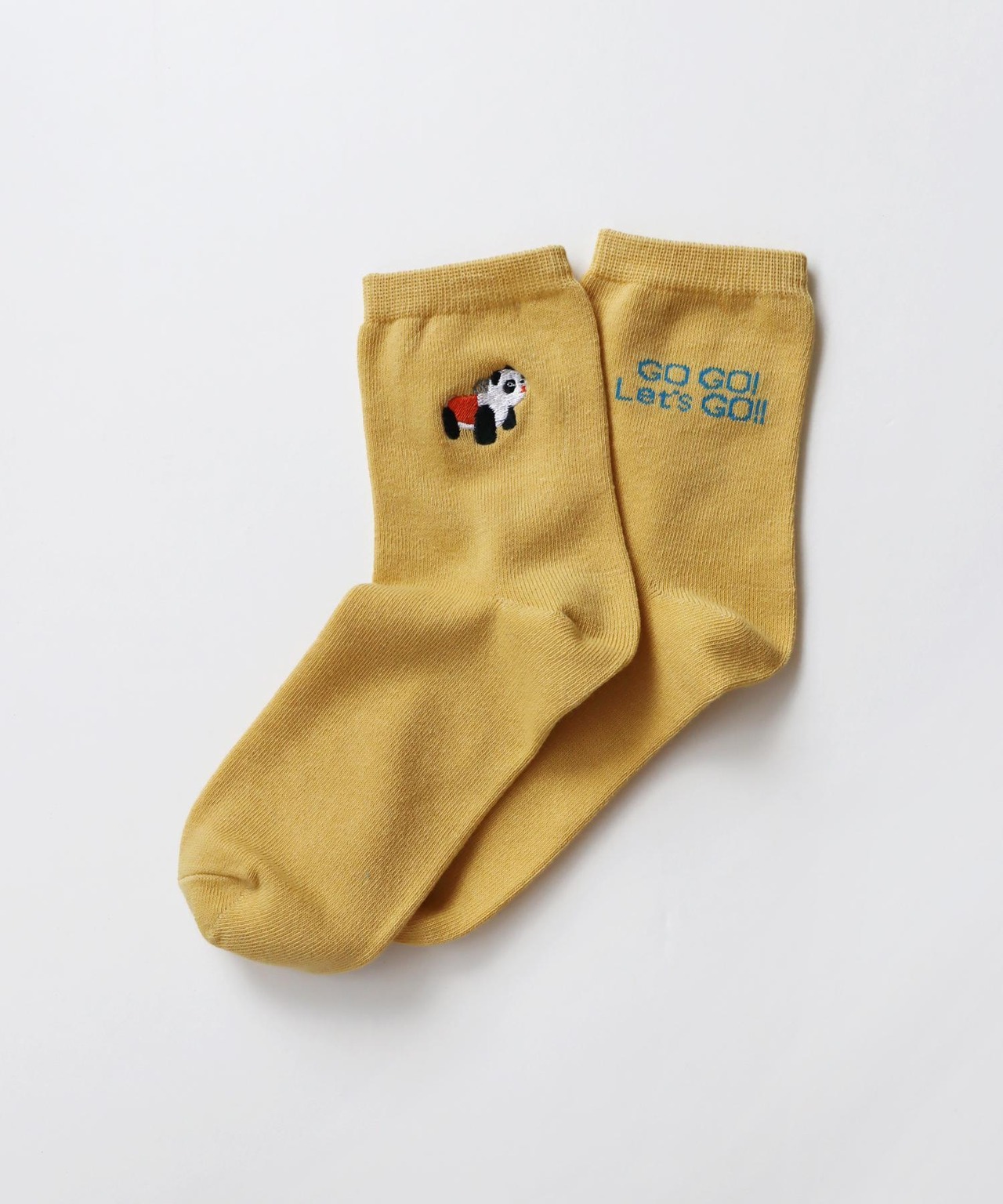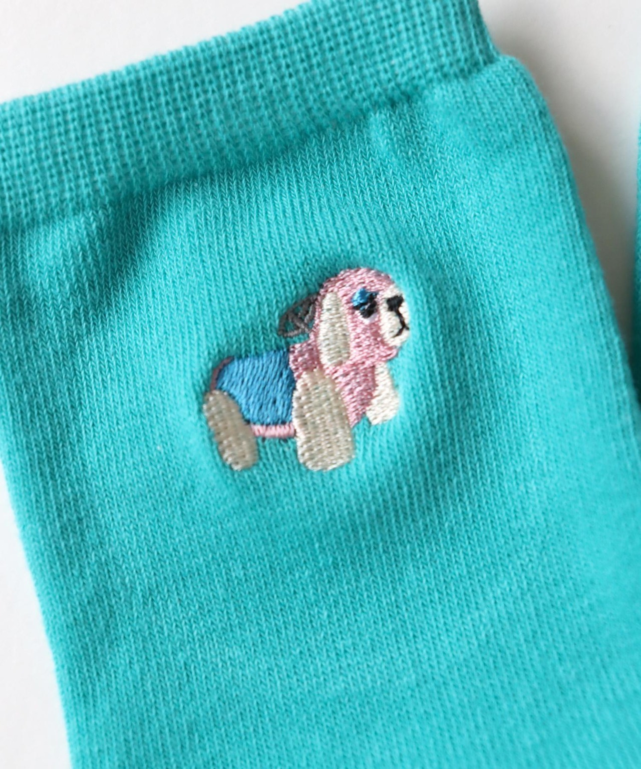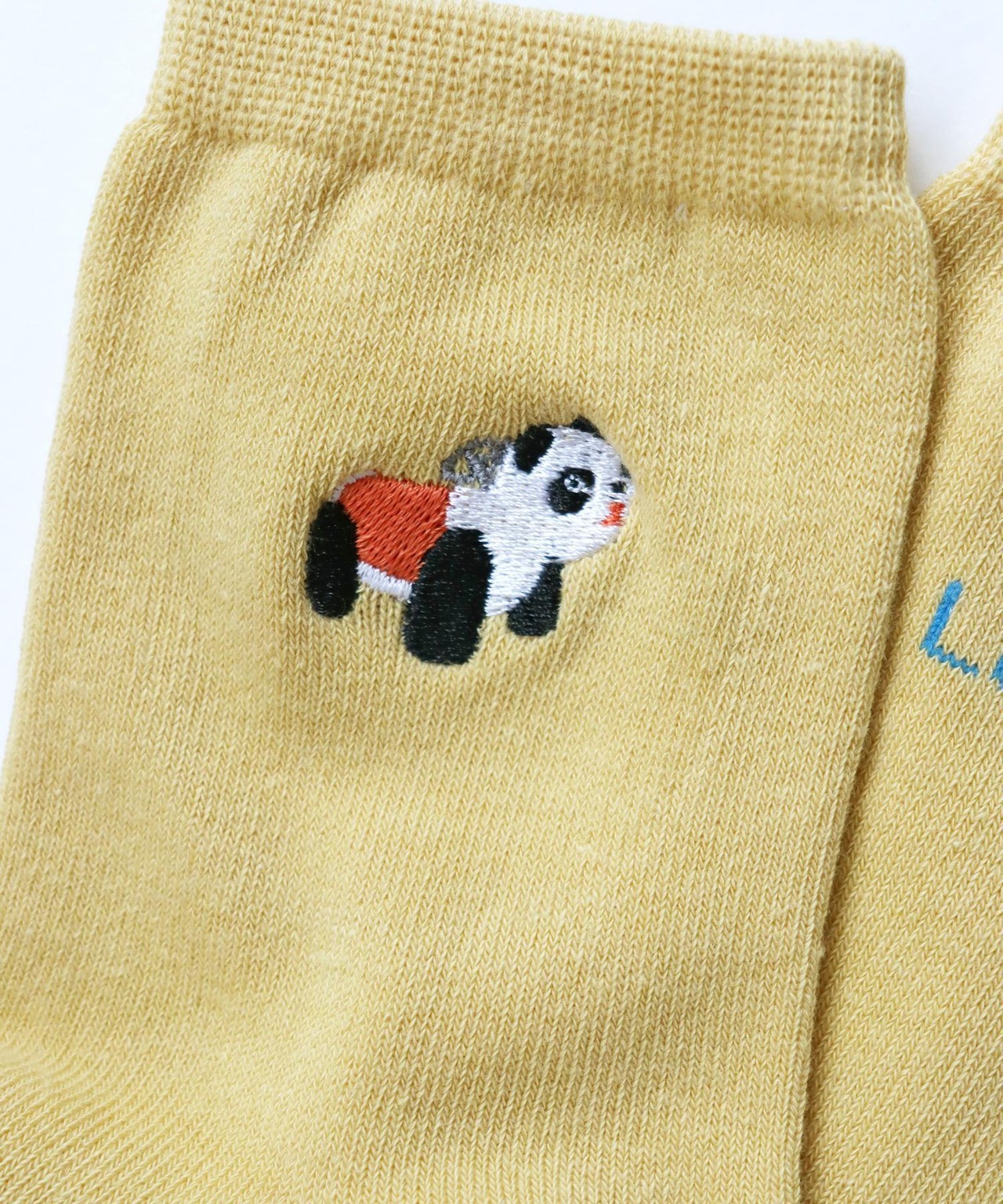 懐かしのアニマルカーを刺繍したショートソックスです。シンプルなワンポイントの刺繍に、