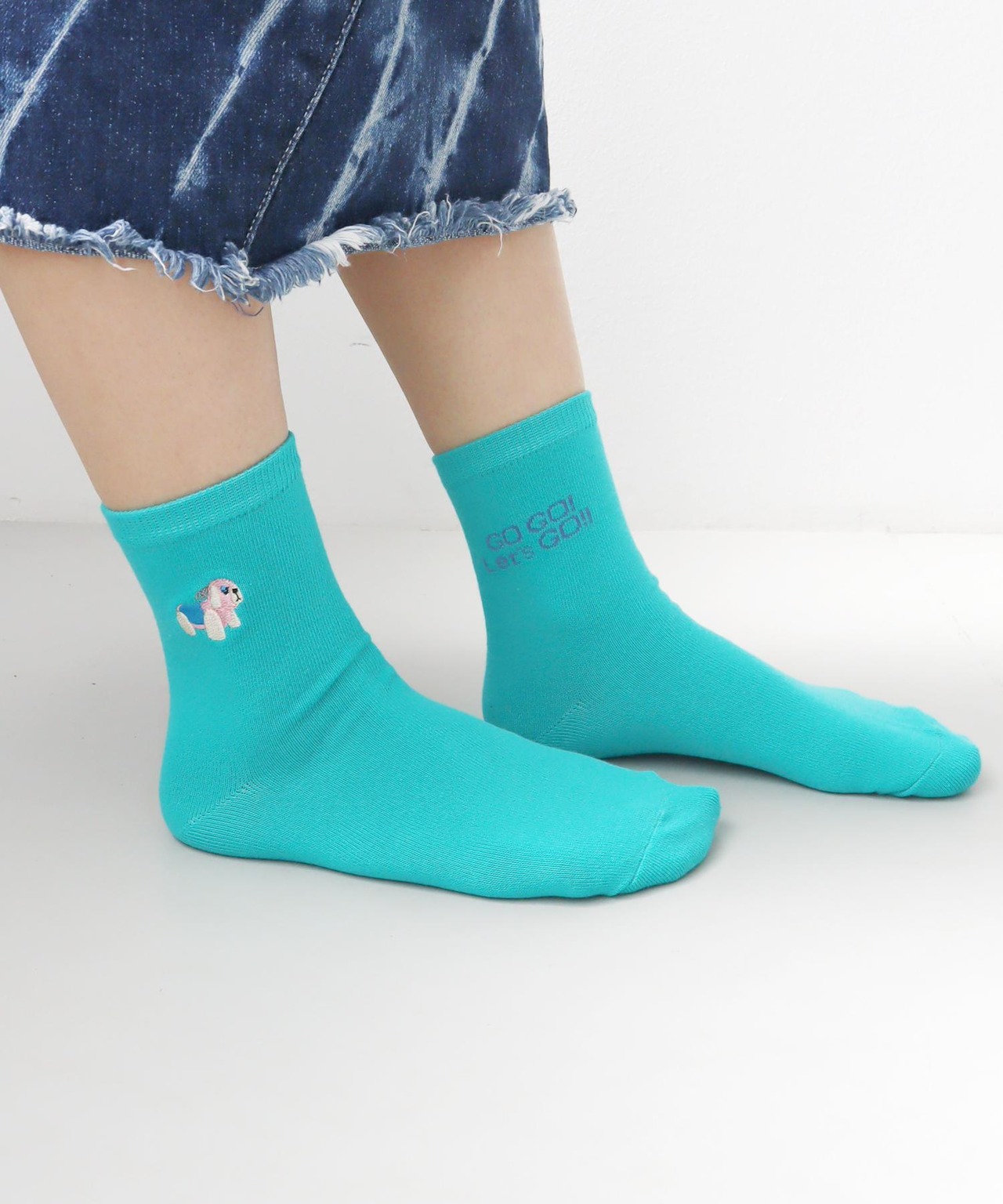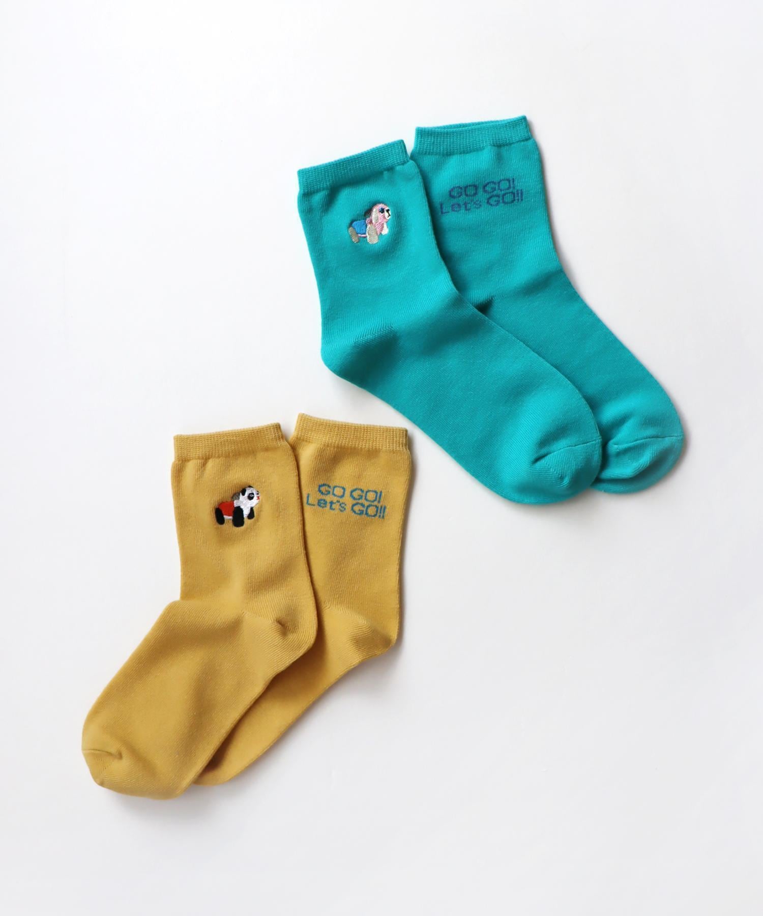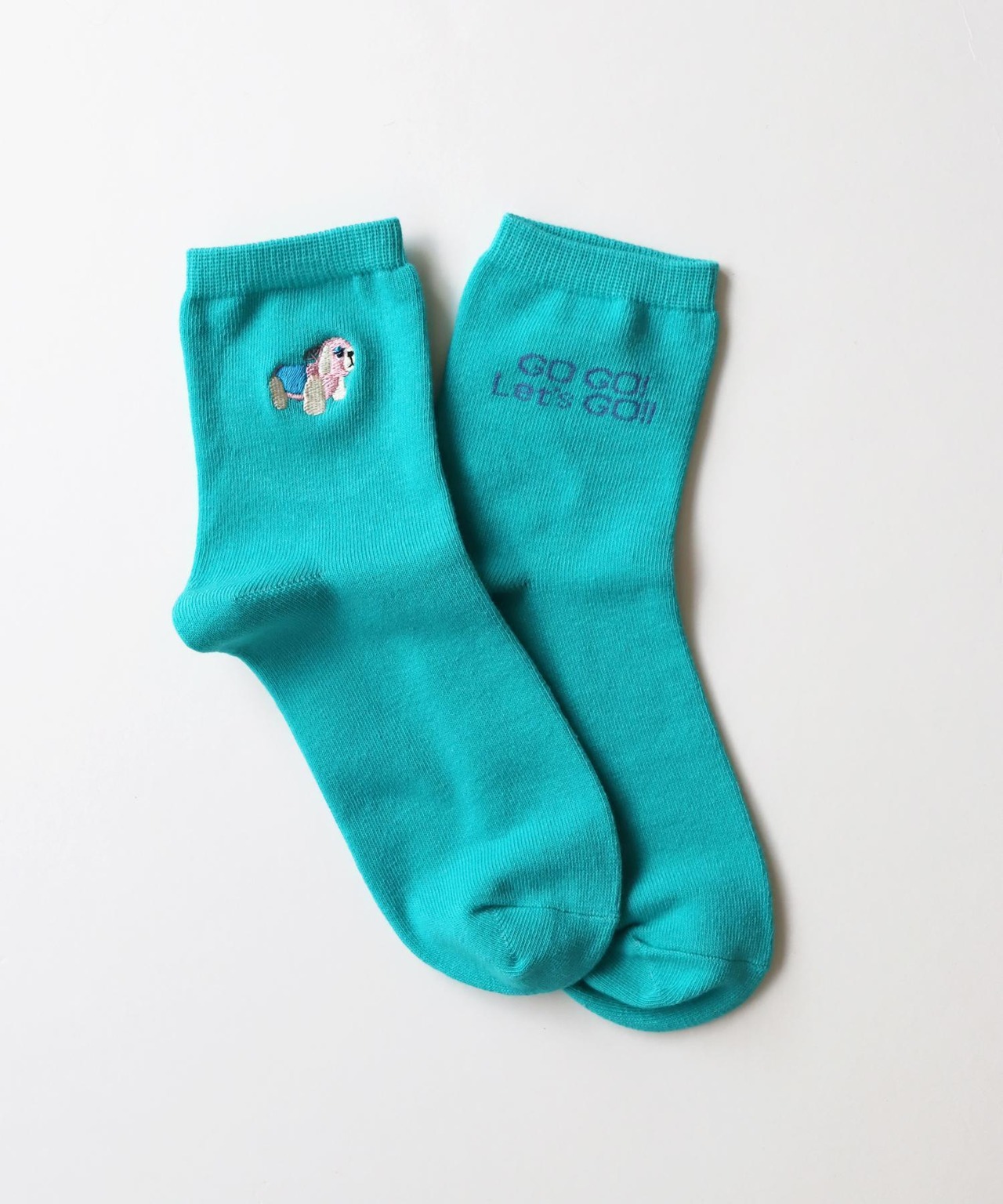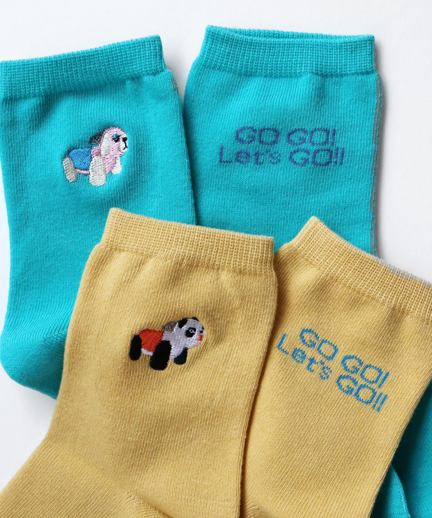懐かしのアニマルカーを刺繍したショートソックスです。シンプルなワンポイントの刺繍に、