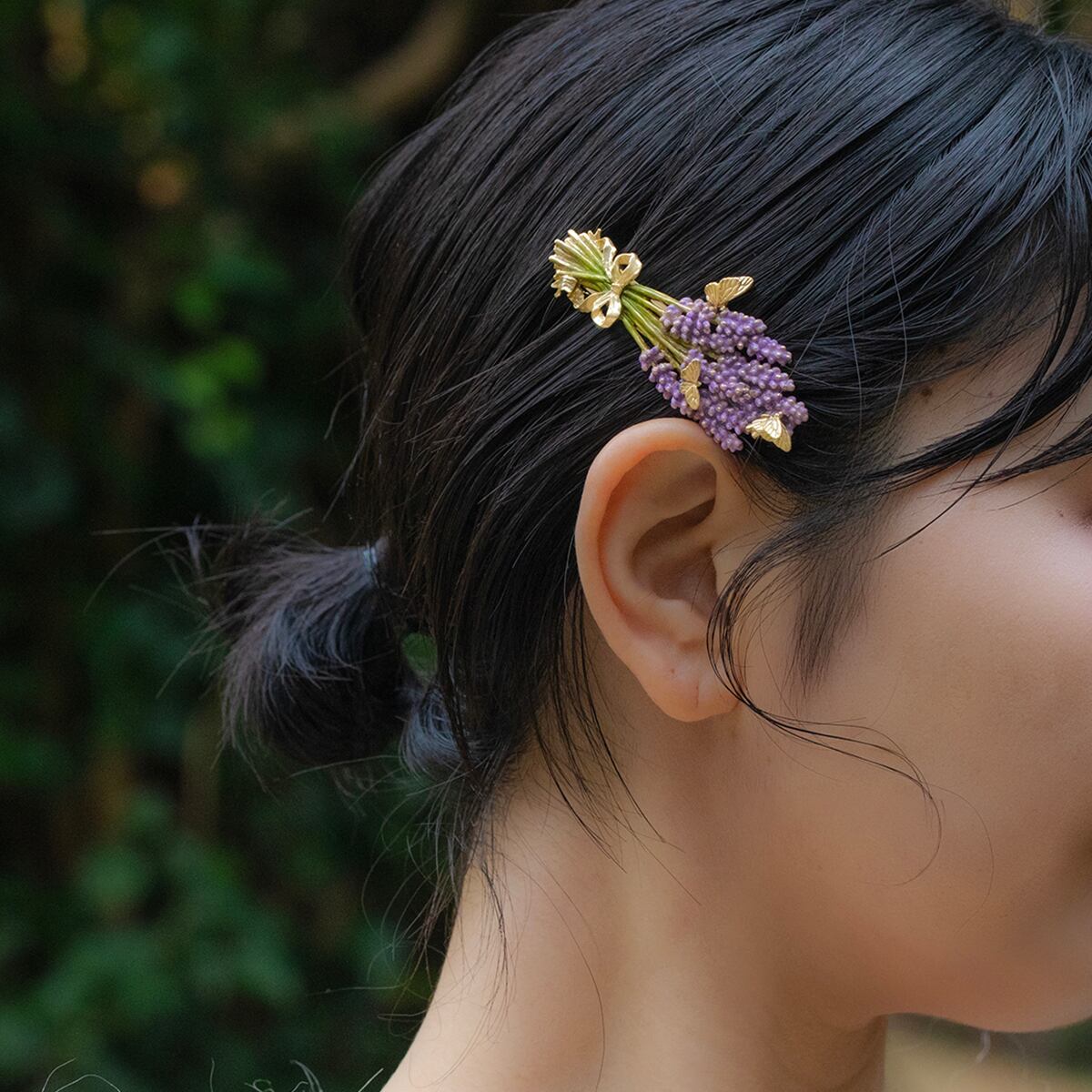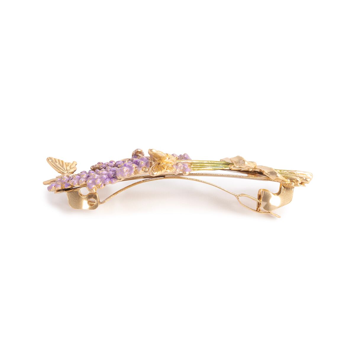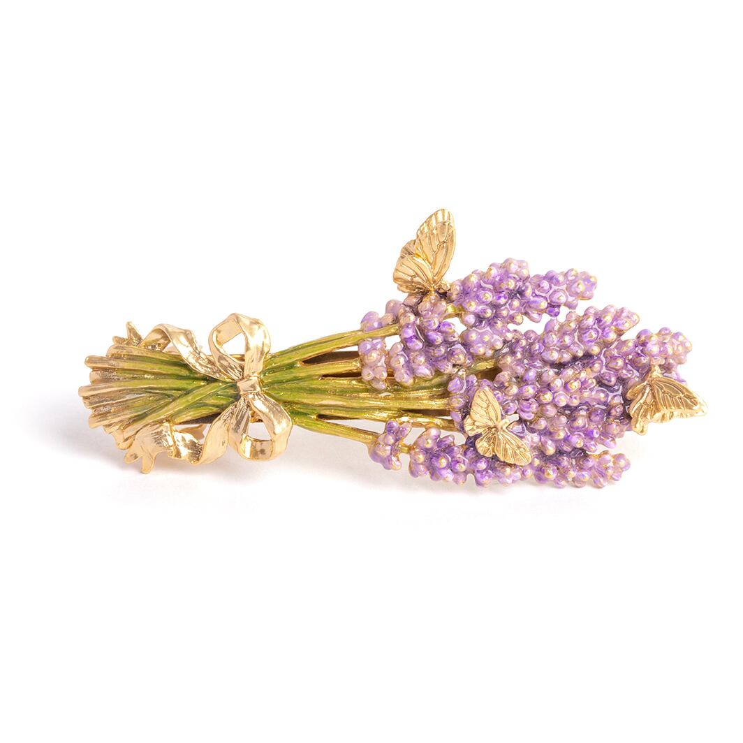今にもほのかな香りが漂ってきそうな、ラベンダーの花束をモチーフにしたバレッタ。