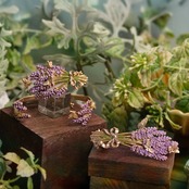 繊細なつぼみをひとつひとつ丁寧に表現し、淡い紫とやさしい緑の色合いで、優美な雰囲気を演出しています。