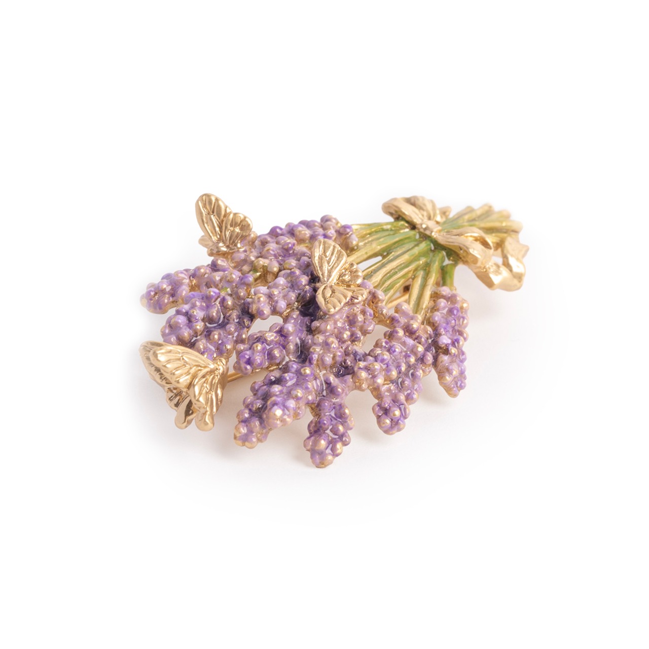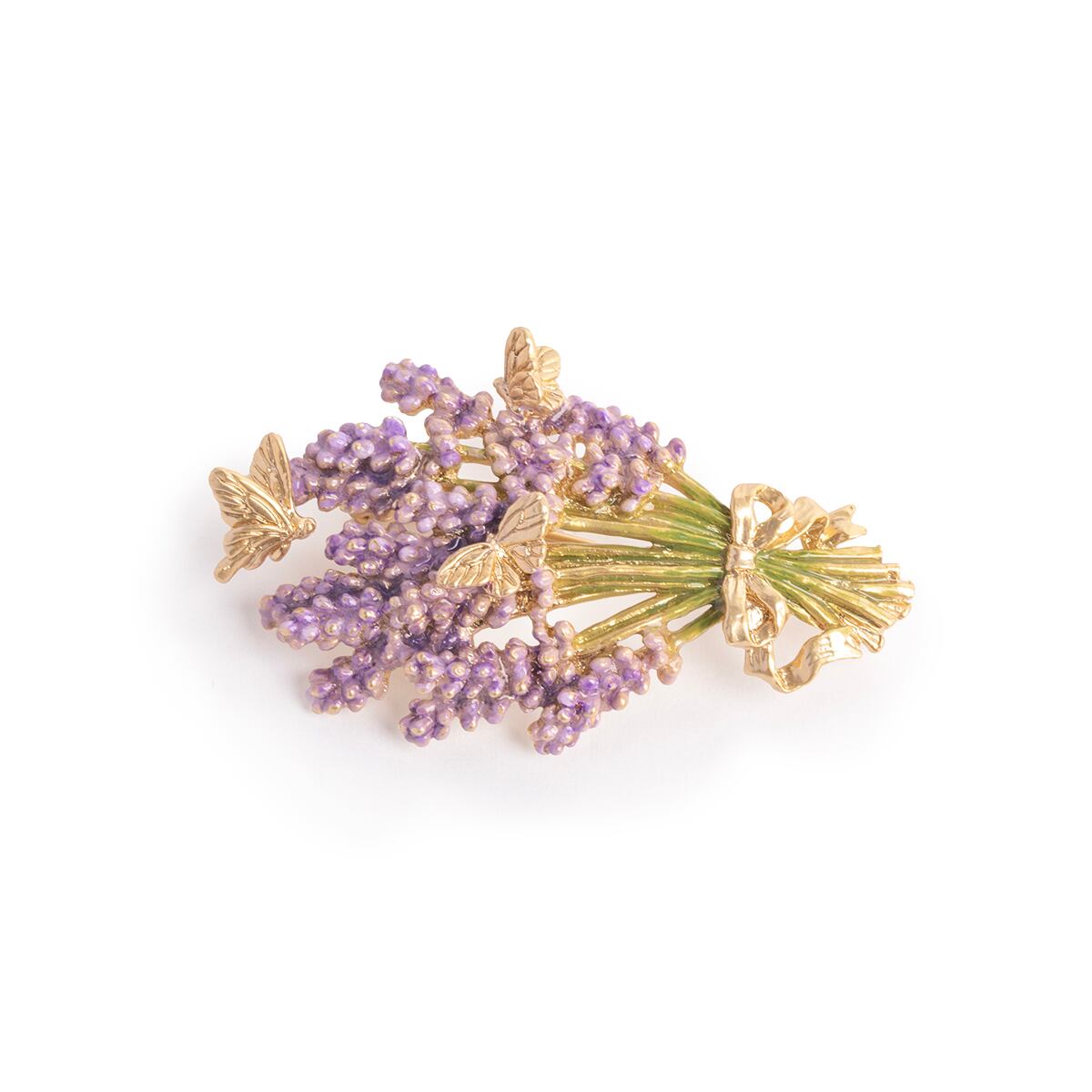 今にもほのかな香りが漂ってきそうな、ラベンダーの花束をモチーフにしたブローチ。