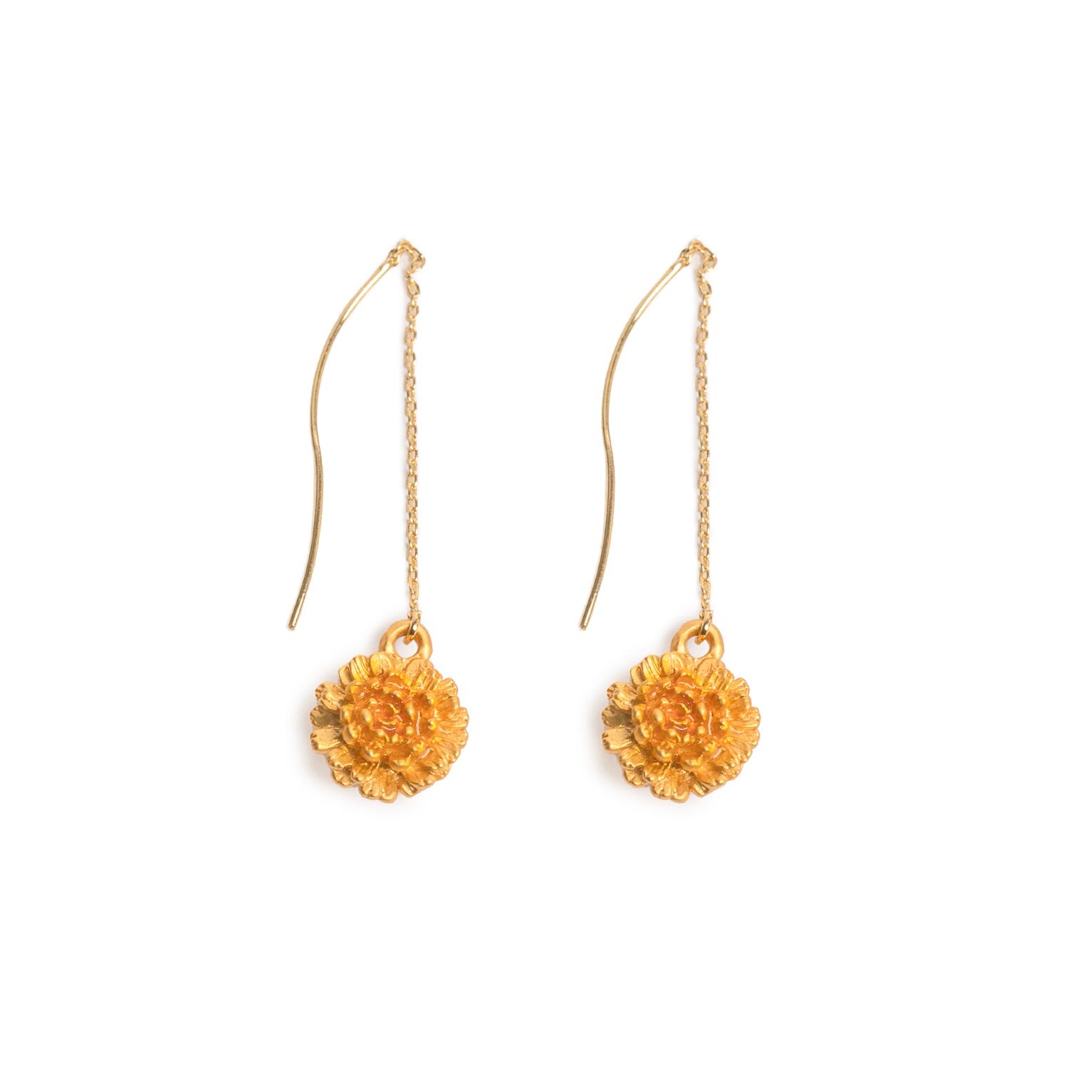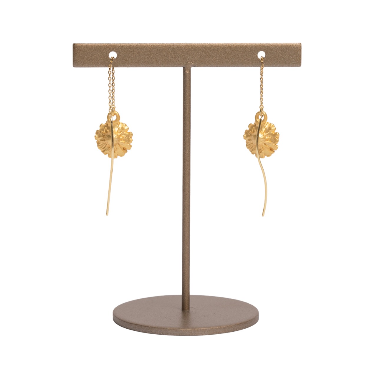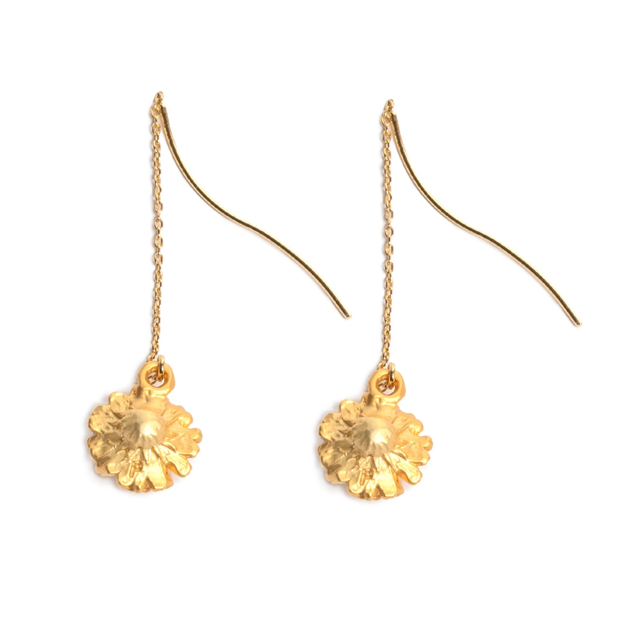 小ぶりなタンポポが耳元で揺れるアメリカンピアス。 チェーンを前後にスライドさせることで、好みの長さに調節して着用できるアイテムです。