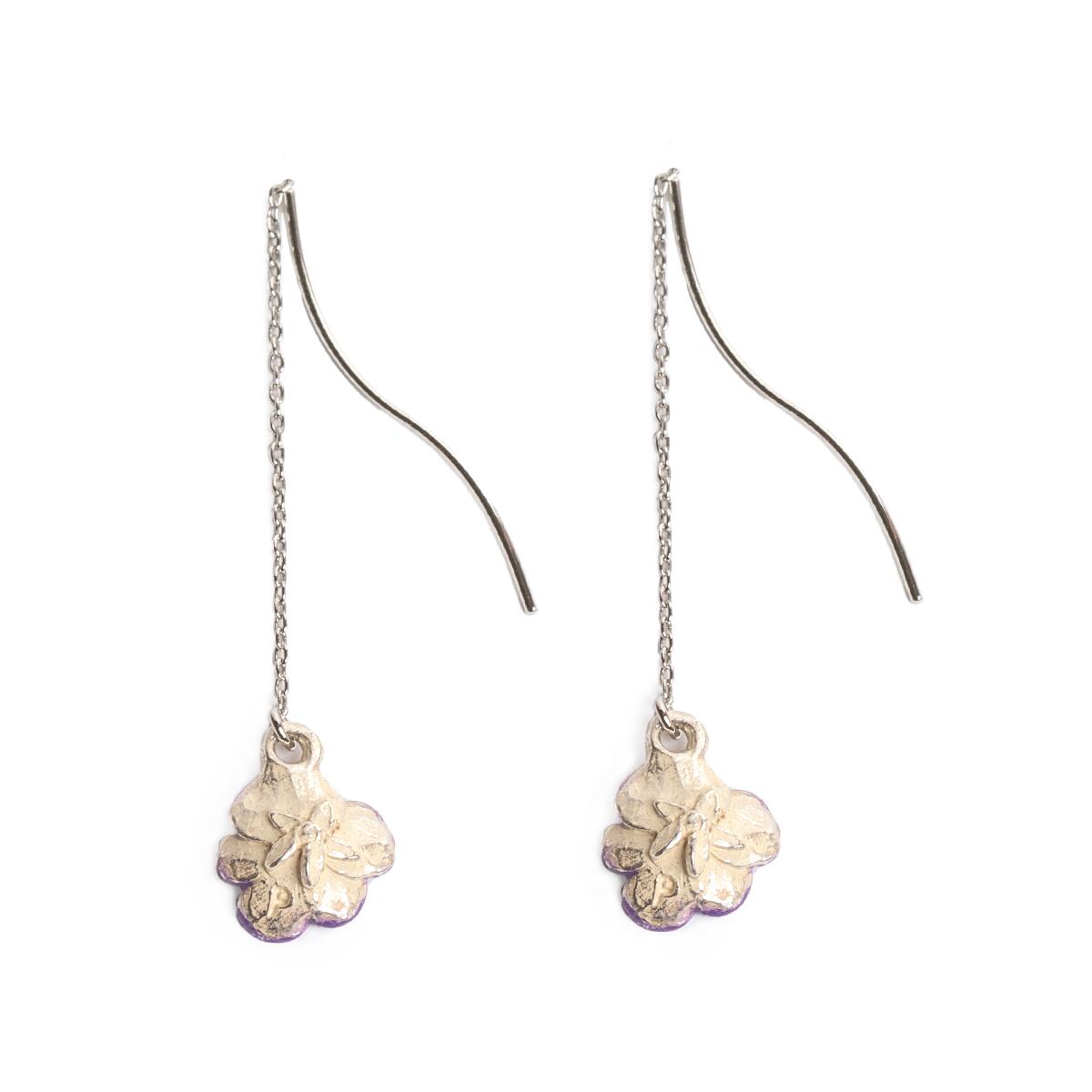 ビオラの花言葉は「もの思い」「私のことを想って」「誠実」。 ※ポストとチェーンの接続部分は大変繊細な作りのため、お取り扱いには十分ご注意ください。