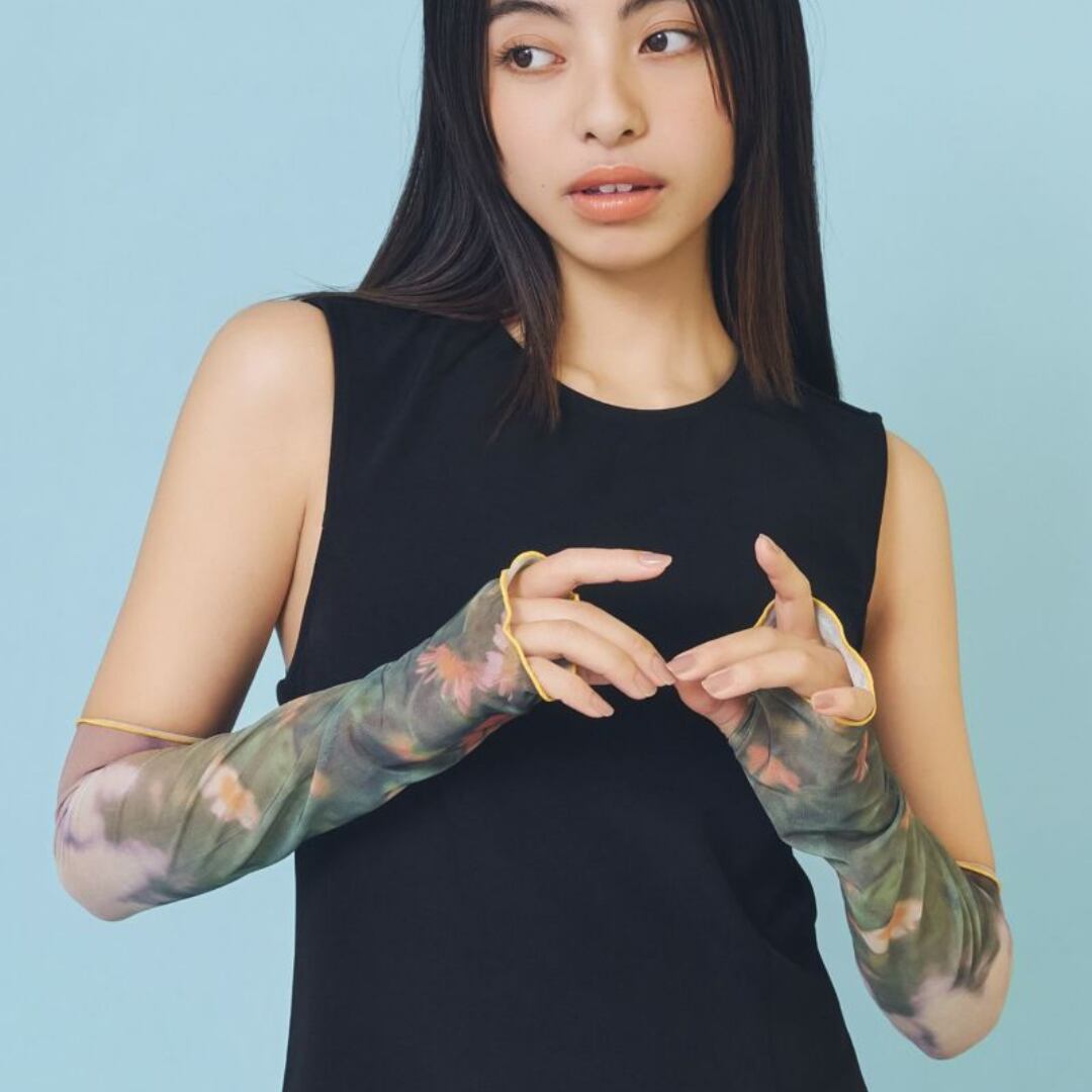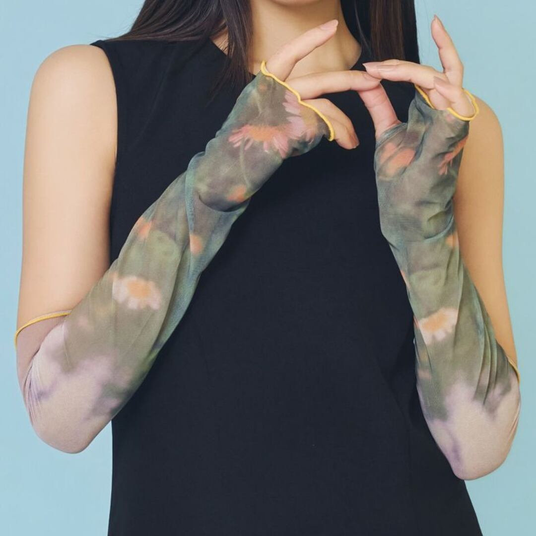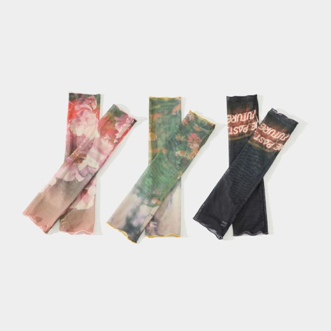 フィルム写真のようなどこか懐かしい雰囲気の写真が効いたアームカバー。