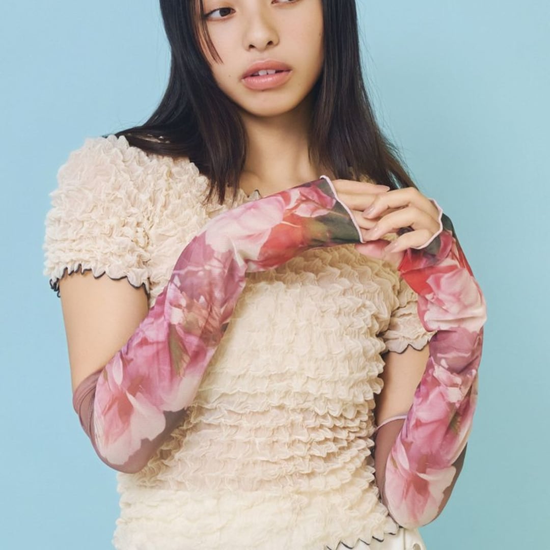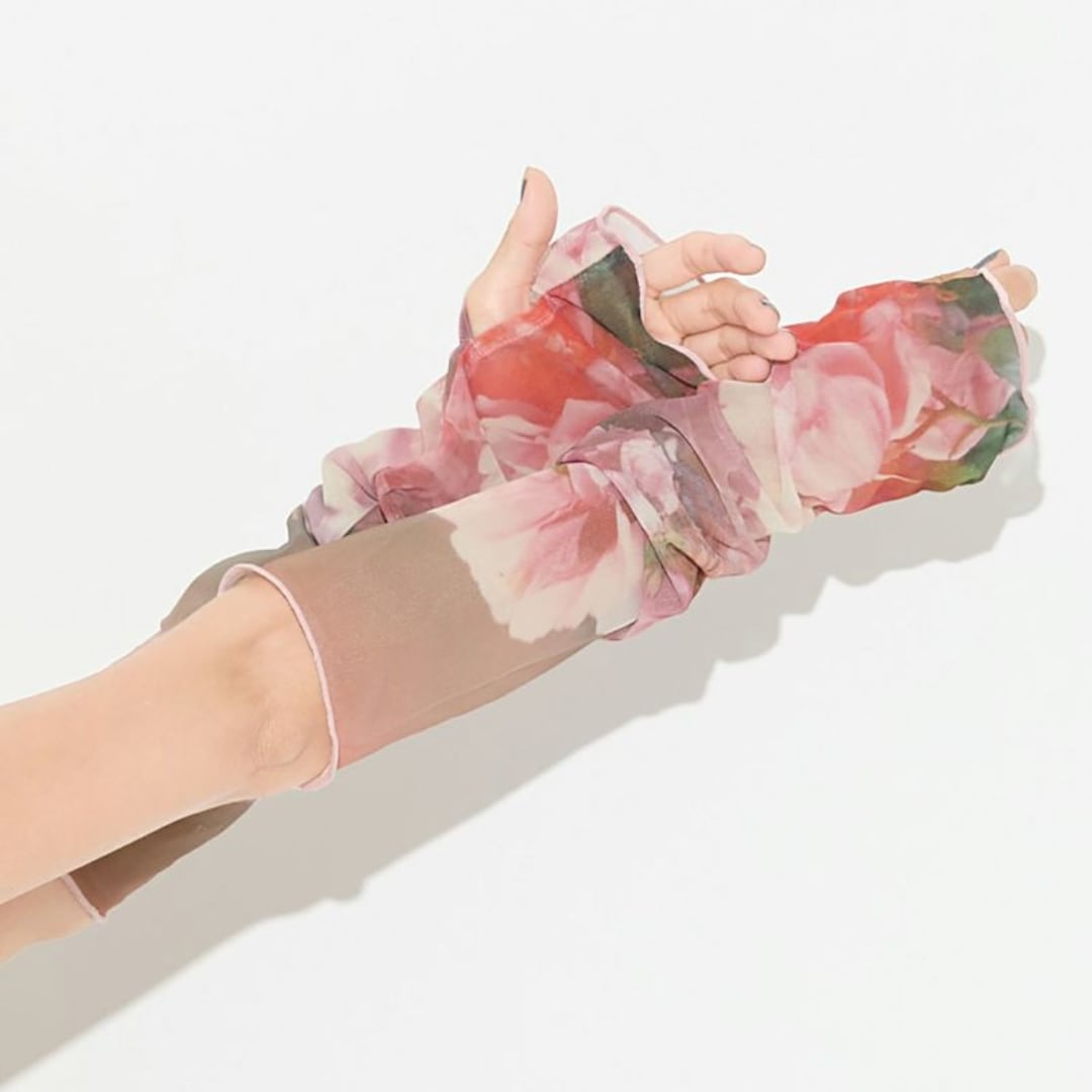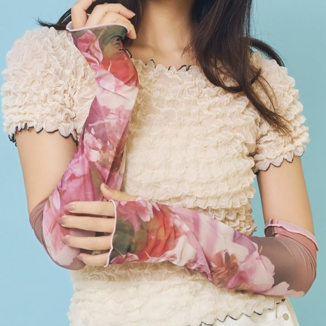 フィルム写真のようなどこか懐かしい雰囲気の写真が効いたアームカバー。