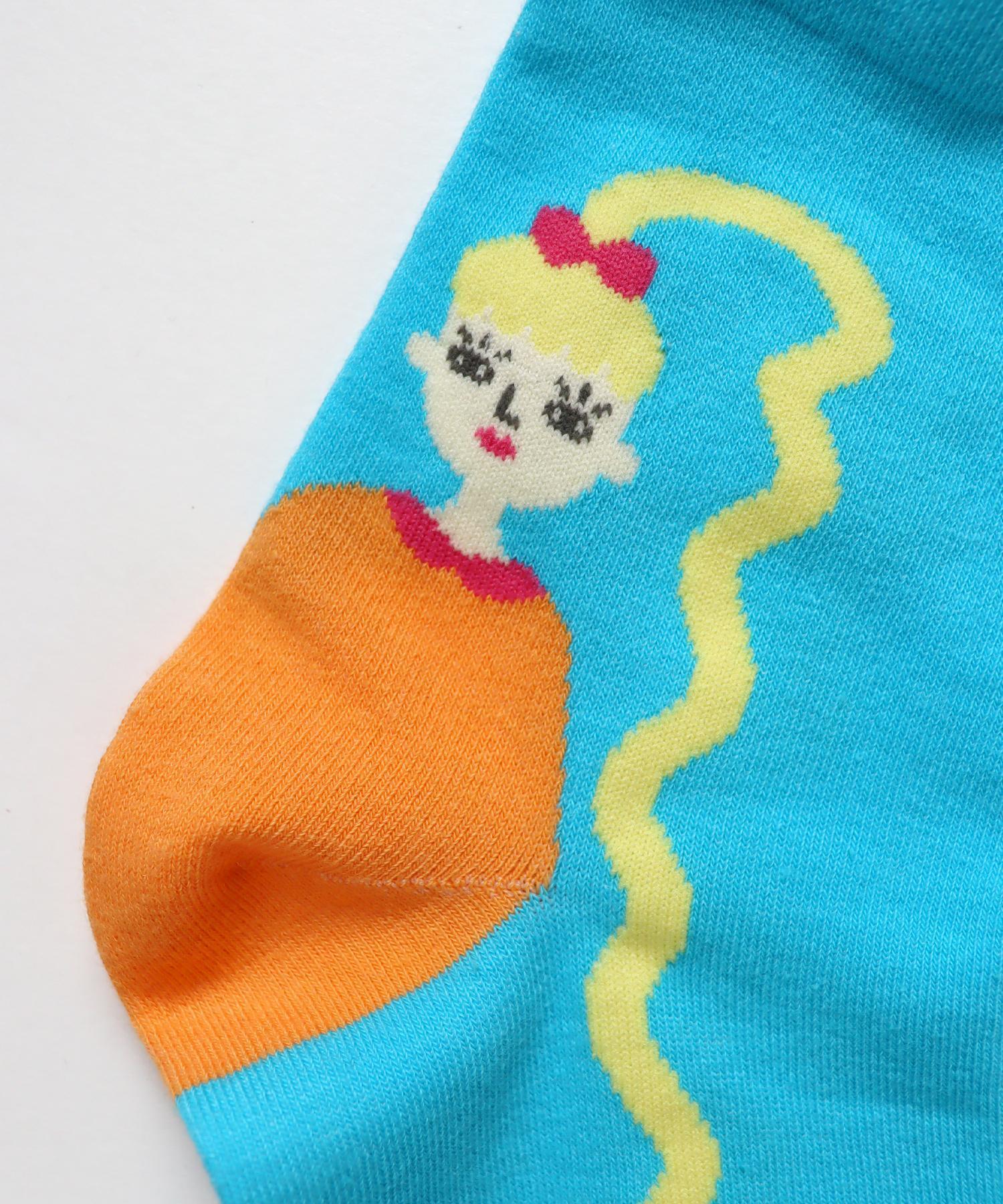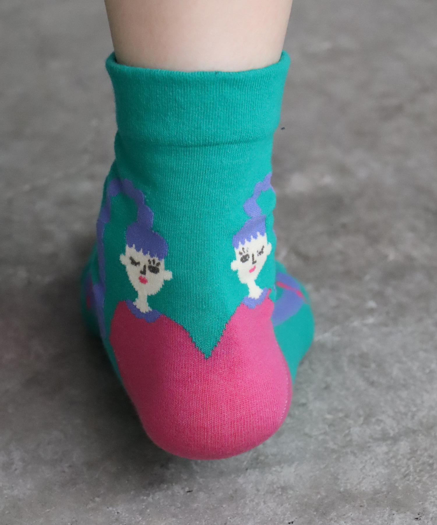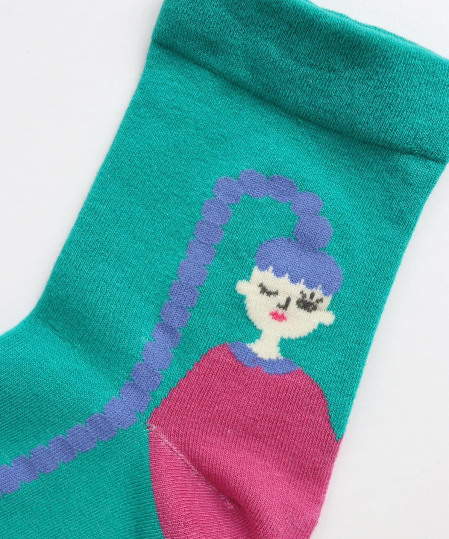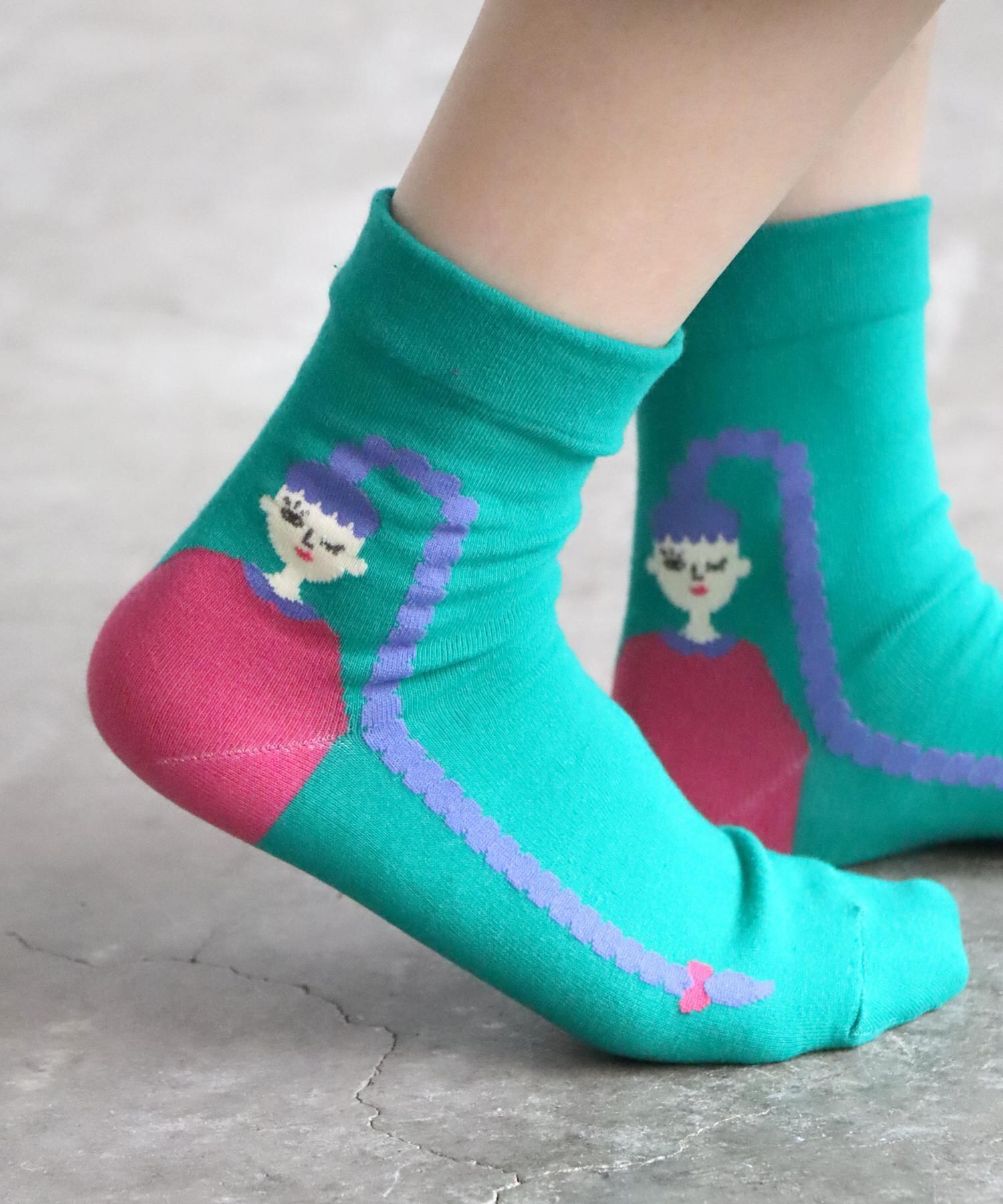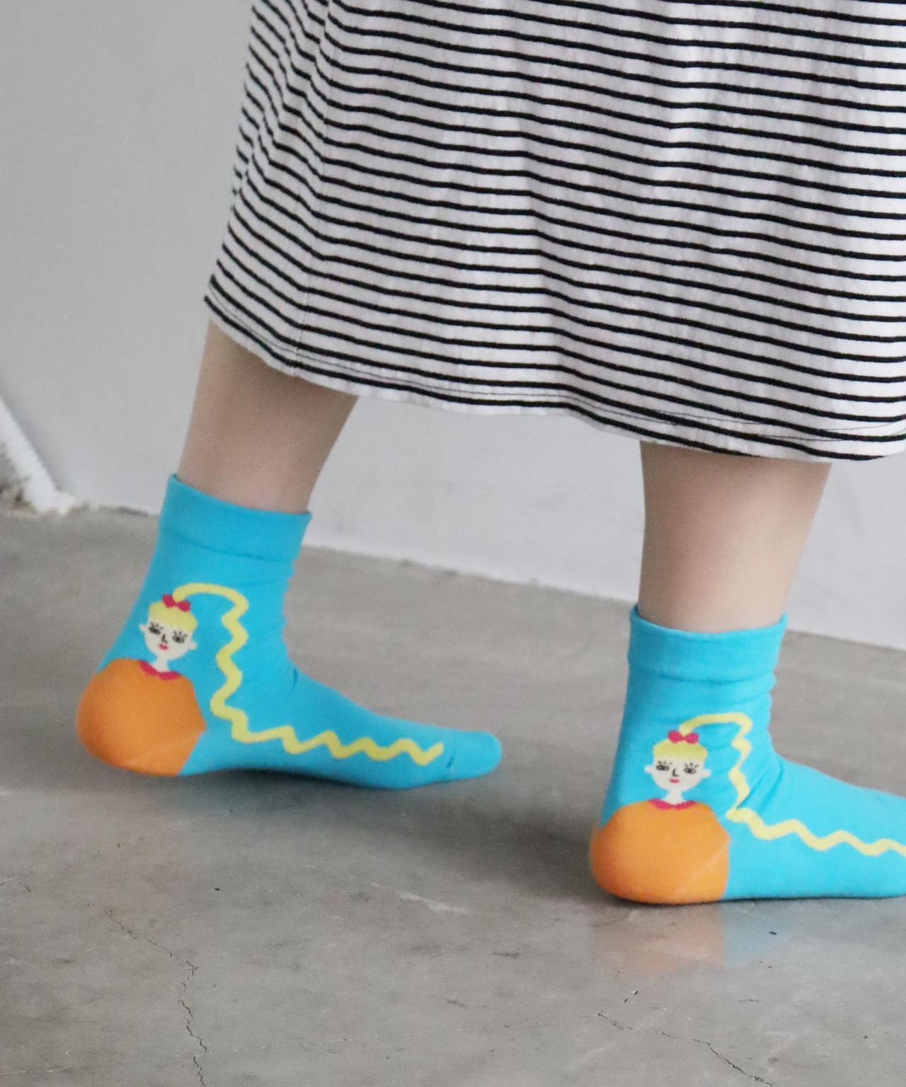 なびくポニーテールが可愛いデザインのソックスです。それぞれ表情の違いにも注目です◎