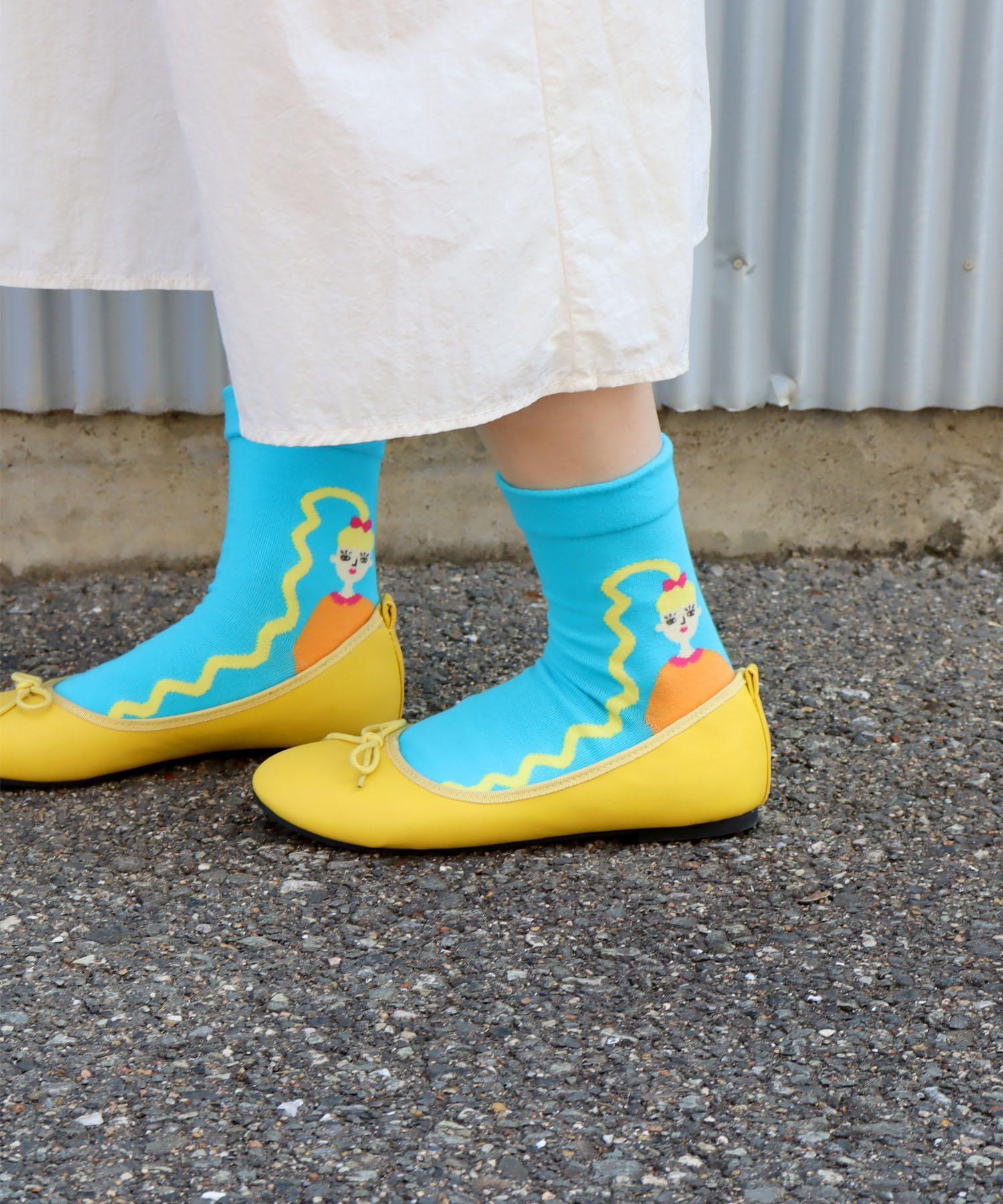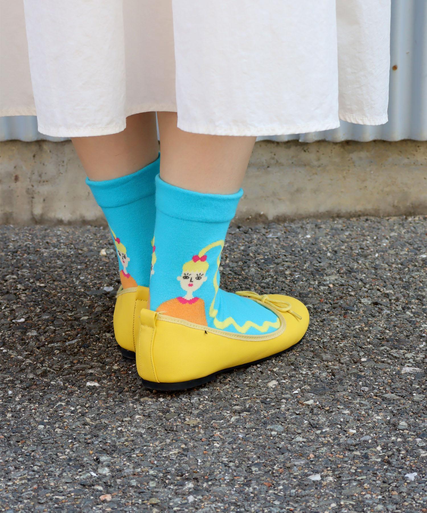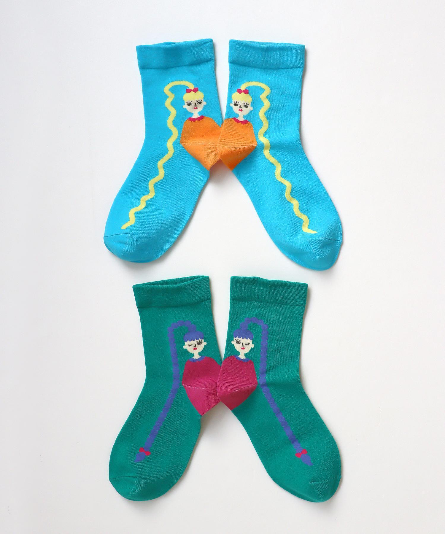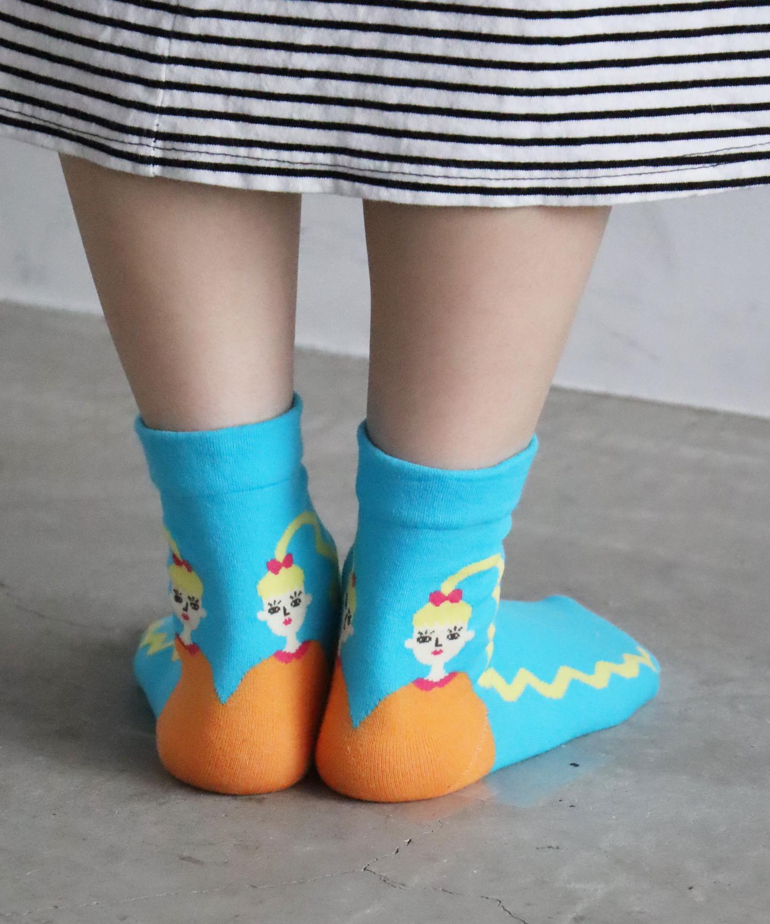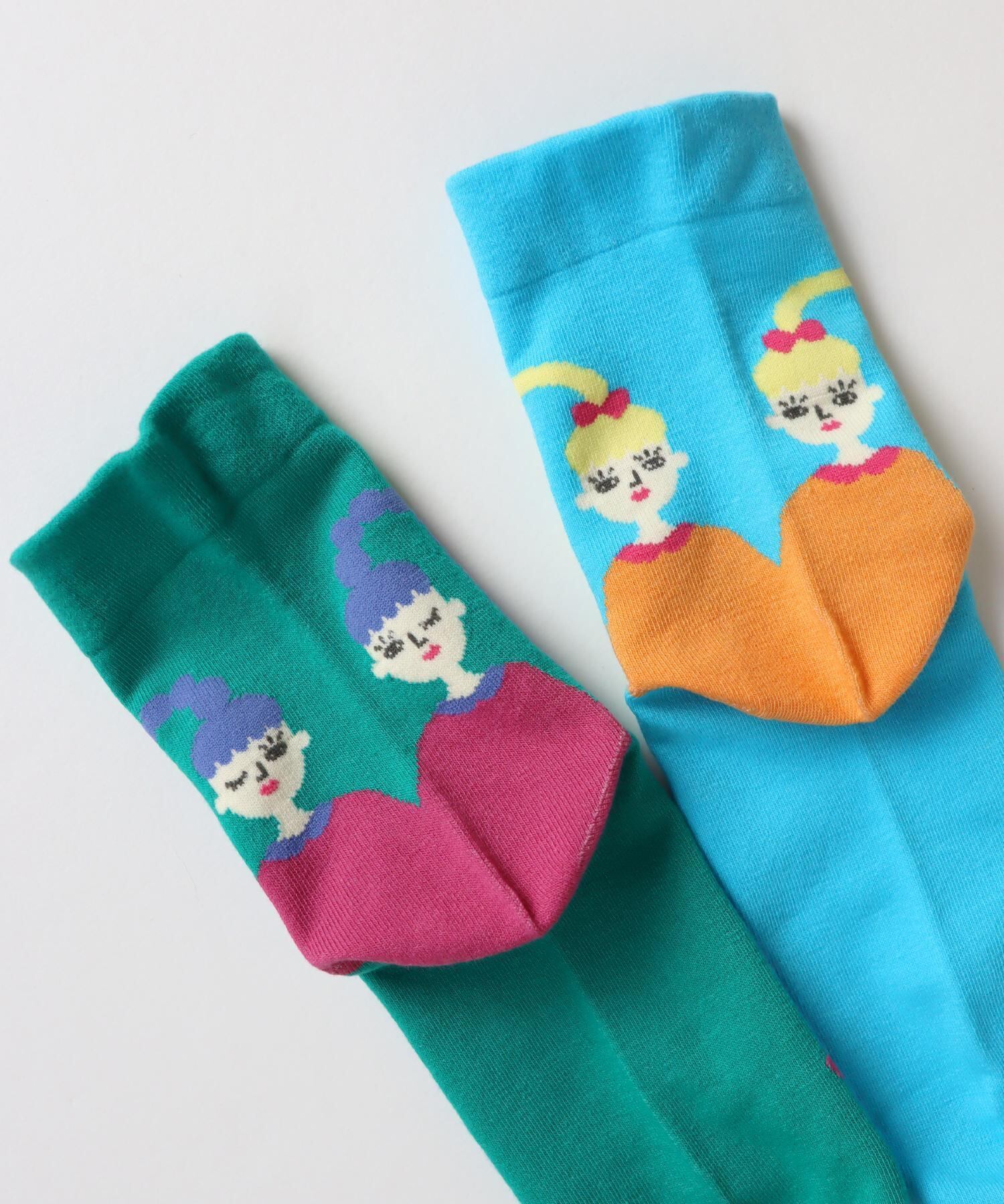 なびくポニーテールが可愛いデザインのソックスです。それぞれ表情の違いにも注目です◎