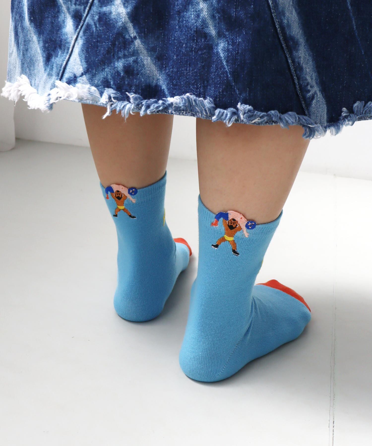 プロレスはみ出し刺繍ショートソックス 2P