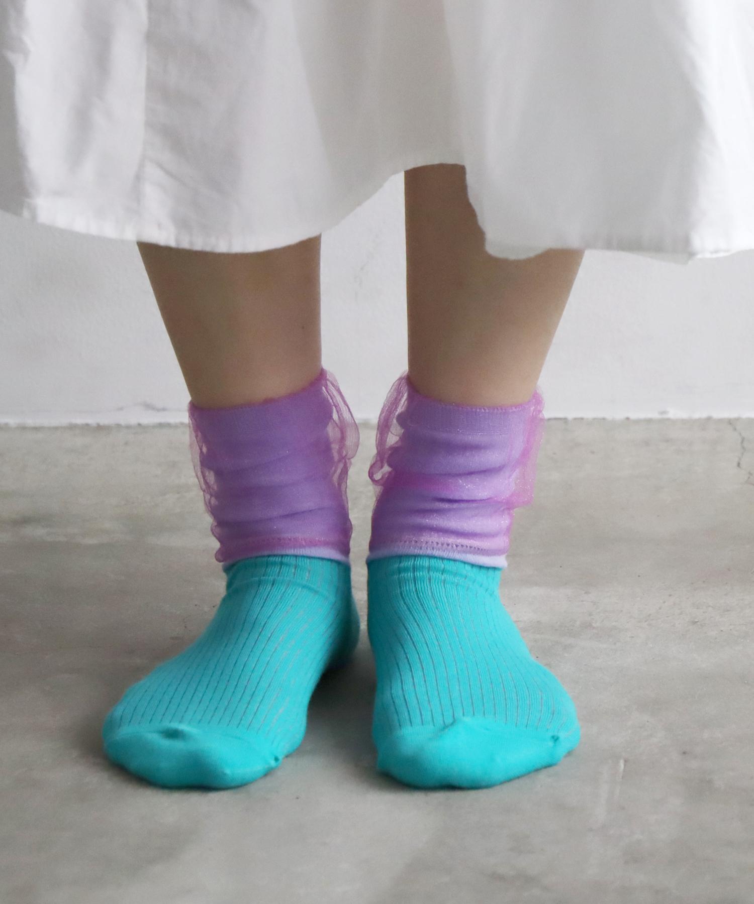 ビビットな配色とシアーのチュールが可愛いショートソックスです。