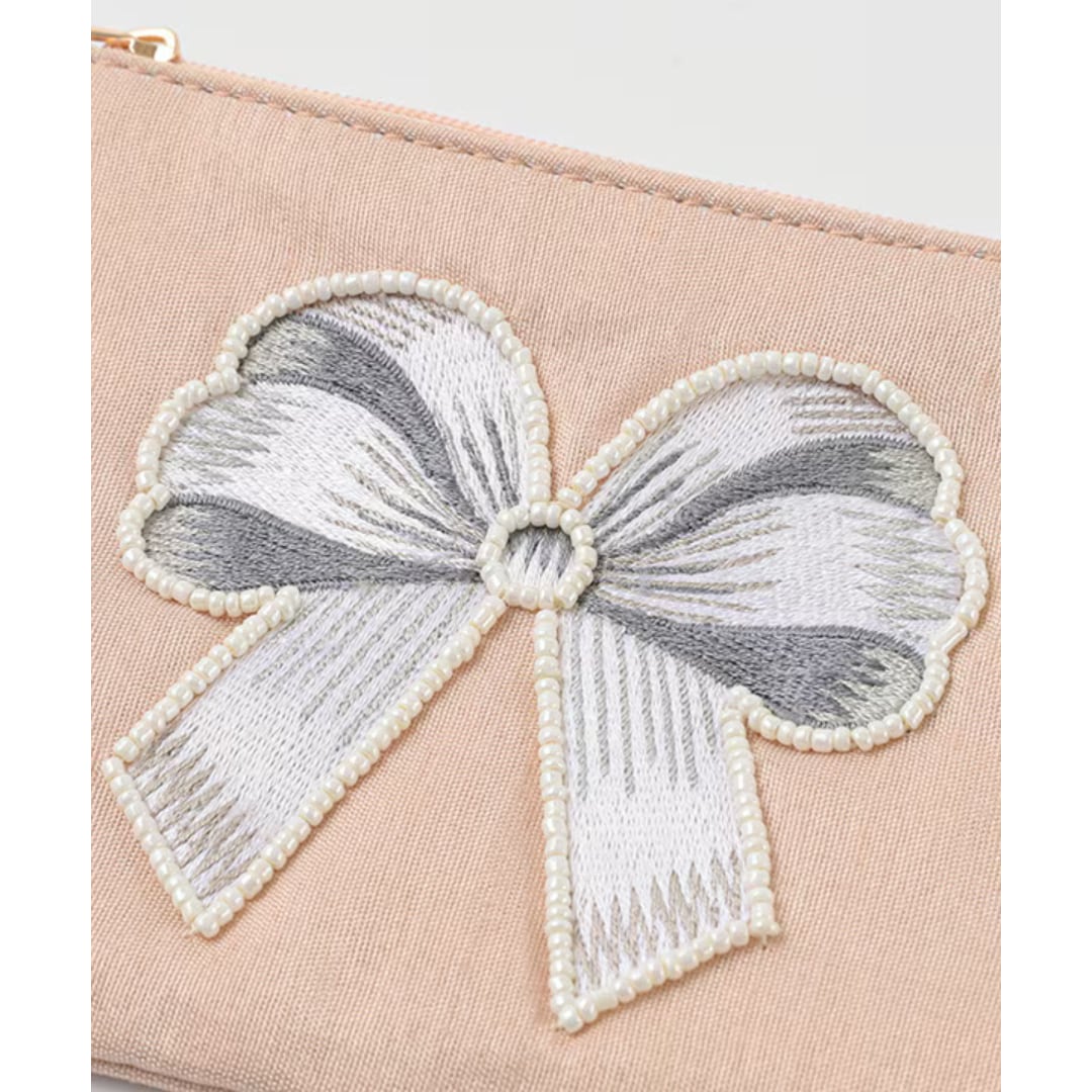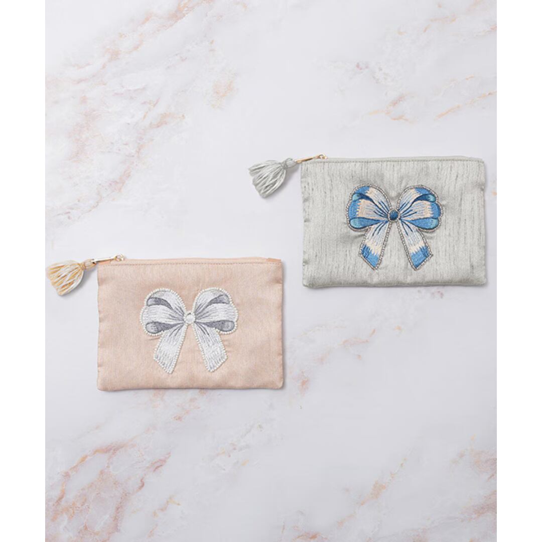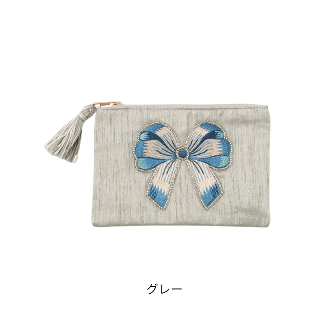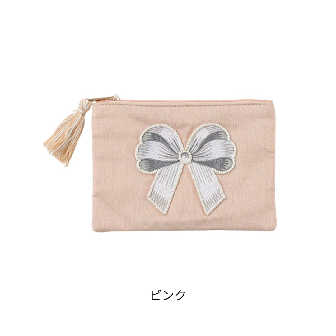 リボン刺繍ポーチ