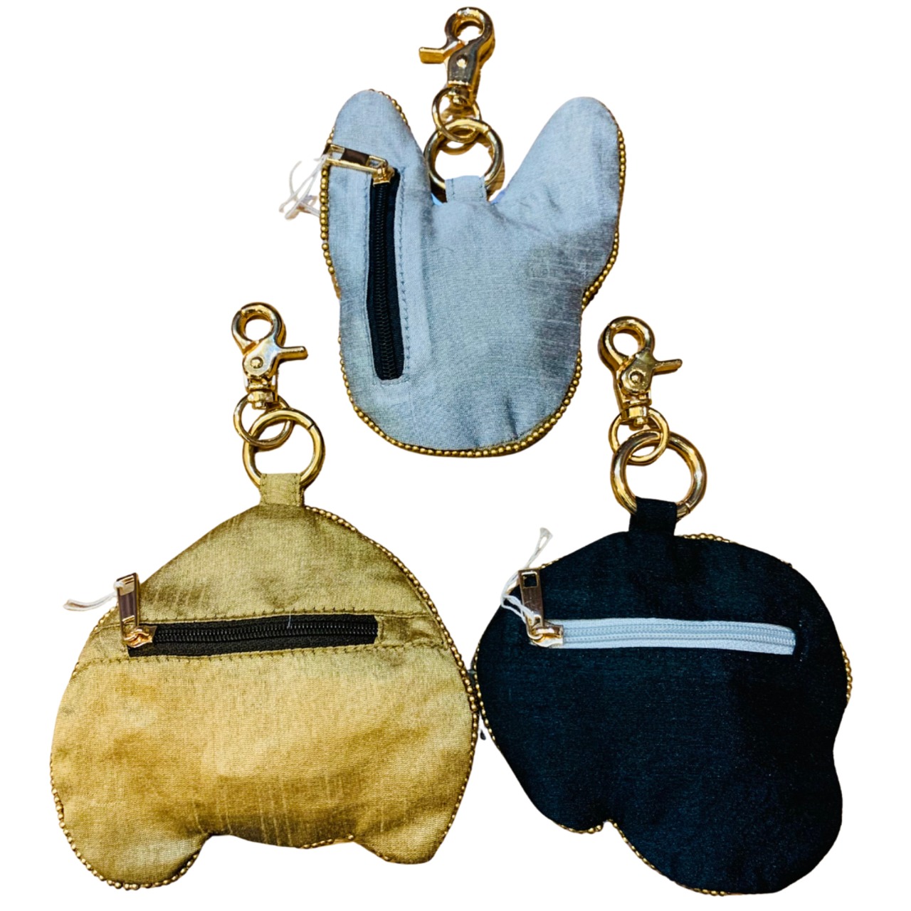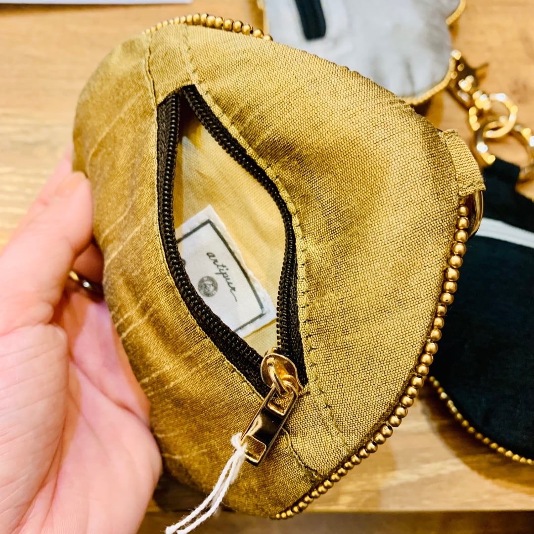 インド製刺繍のポーチ兼チャームシリーズ。フェイスラインには華やかなビーズ刺繍を、