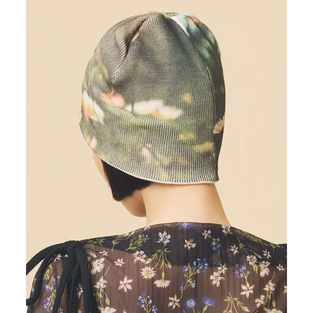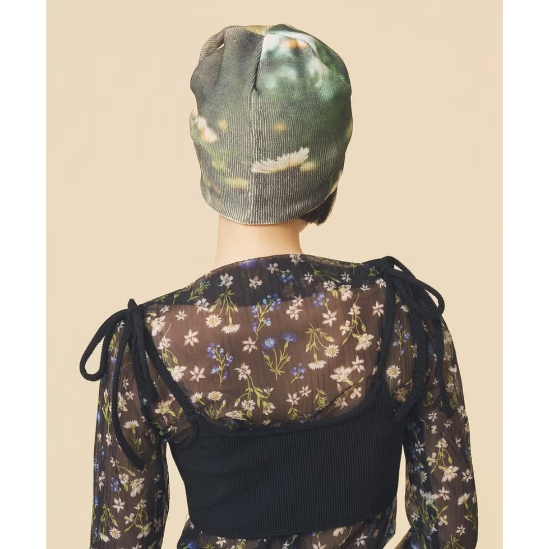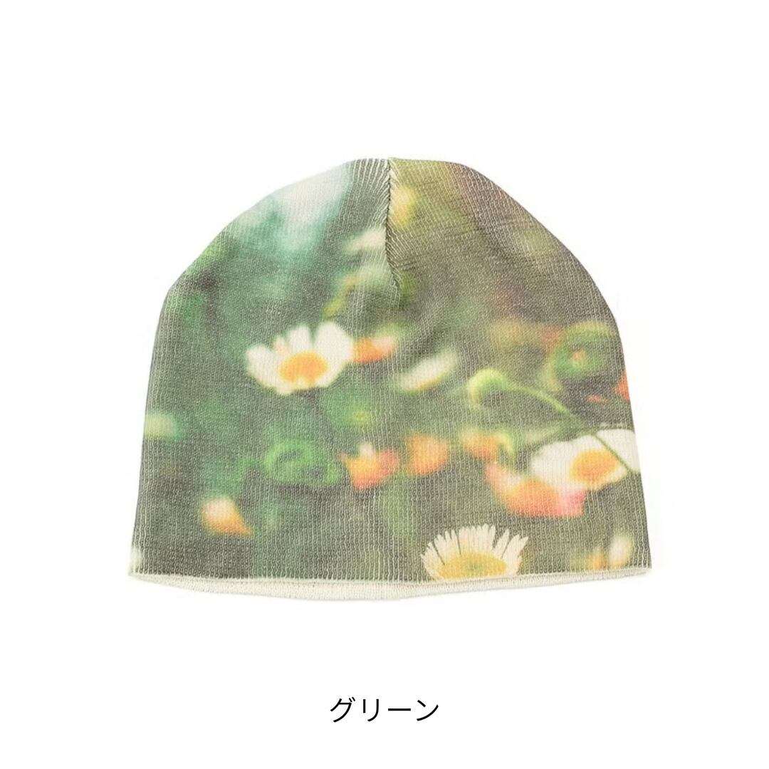 フィルム写真のようなどこか懐かしい雰囲気の写真が効いたプリントビーニー。