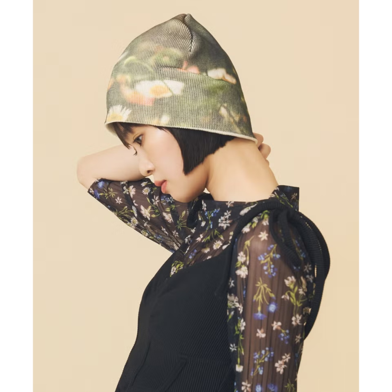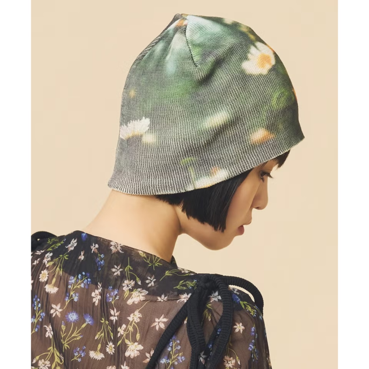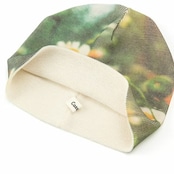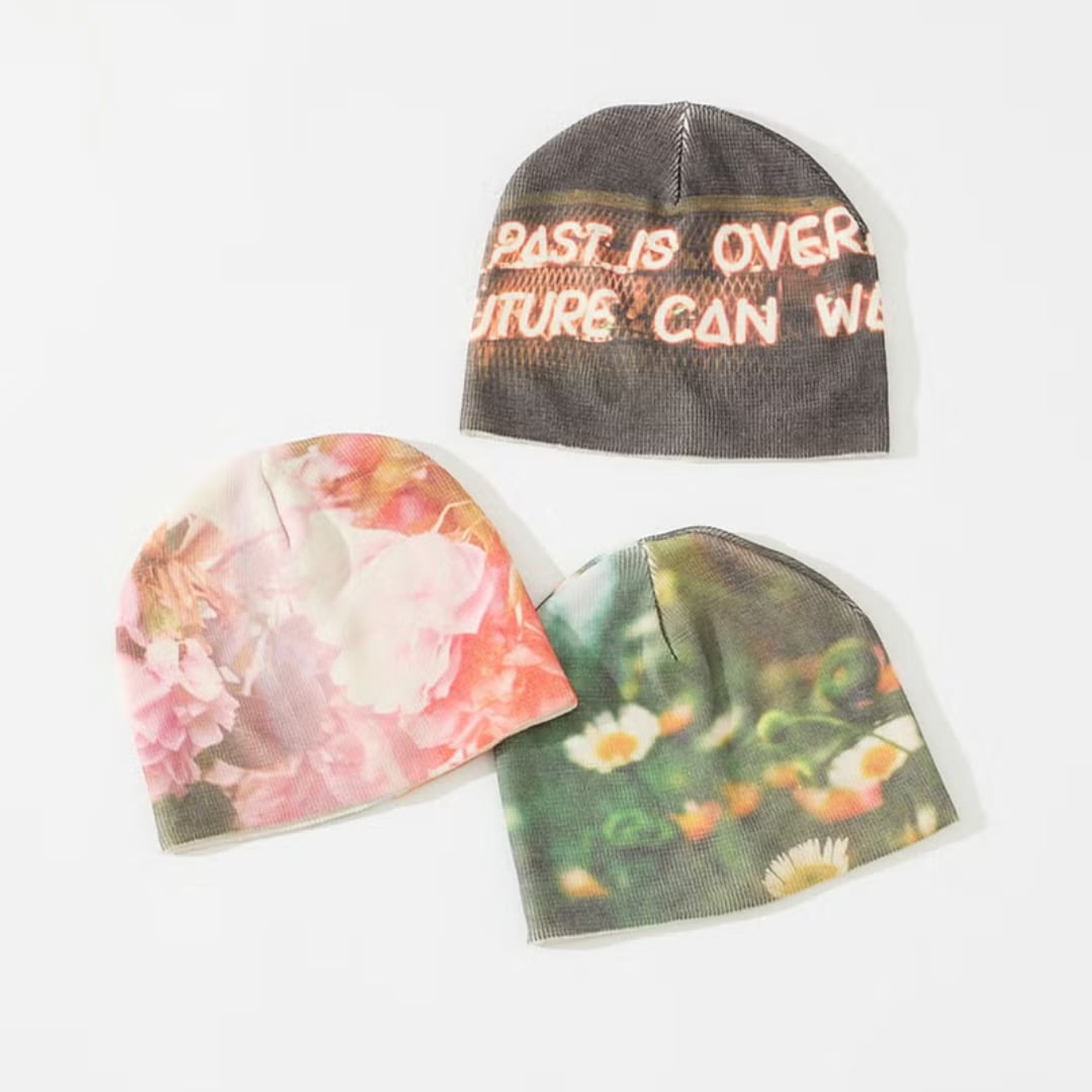 フィルム写真のようなどこか懐かしい雰囲気の写真が効いたプリントビーニー。