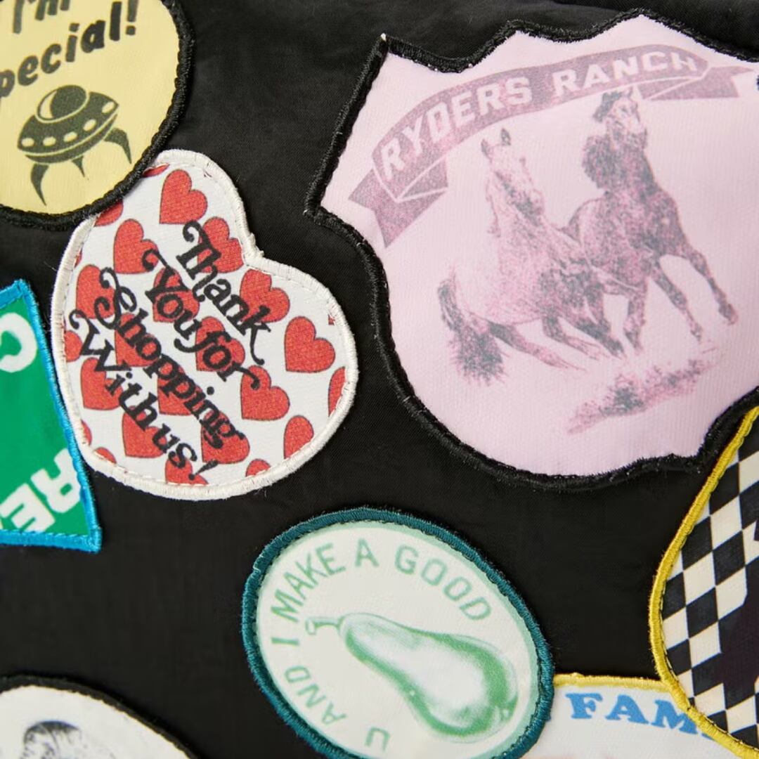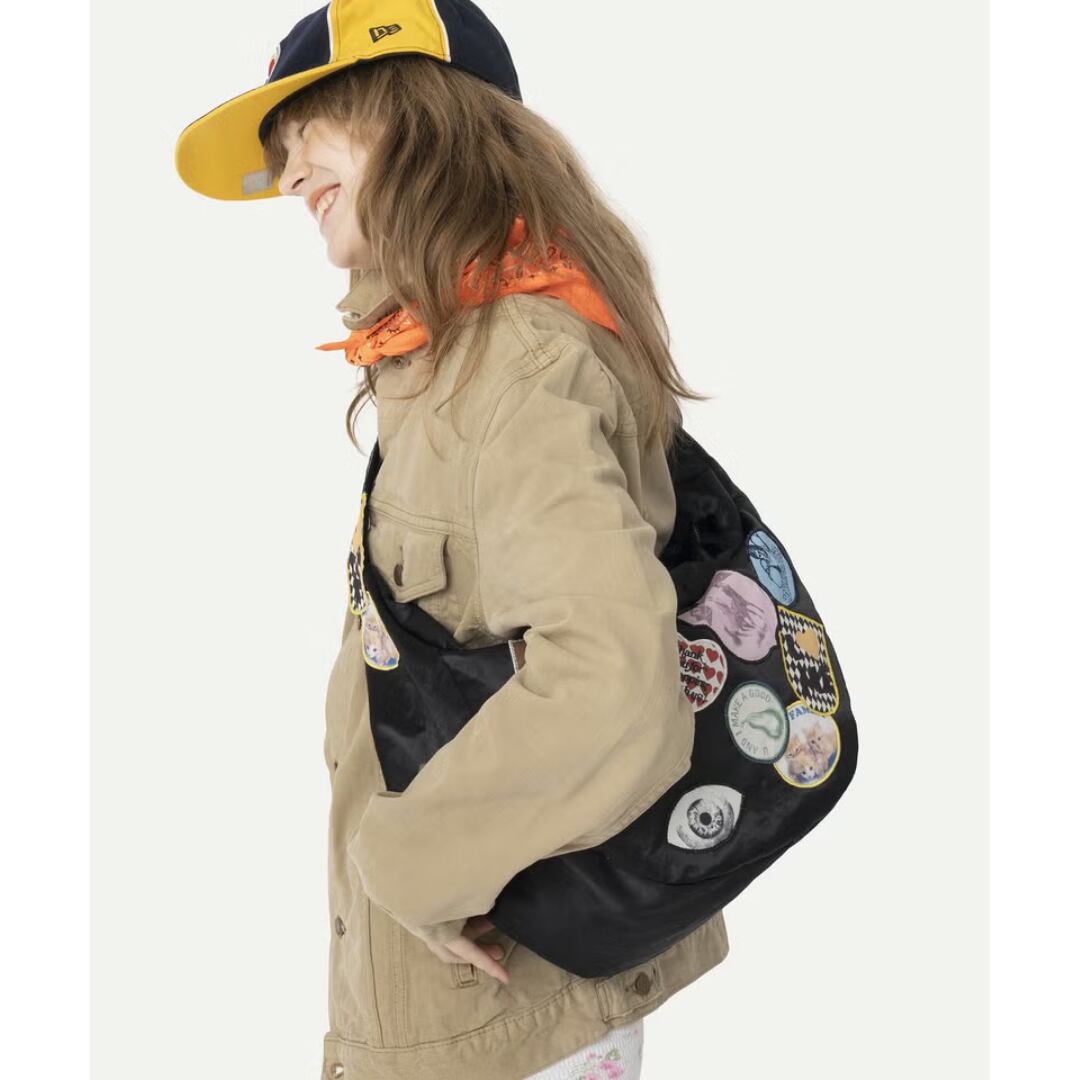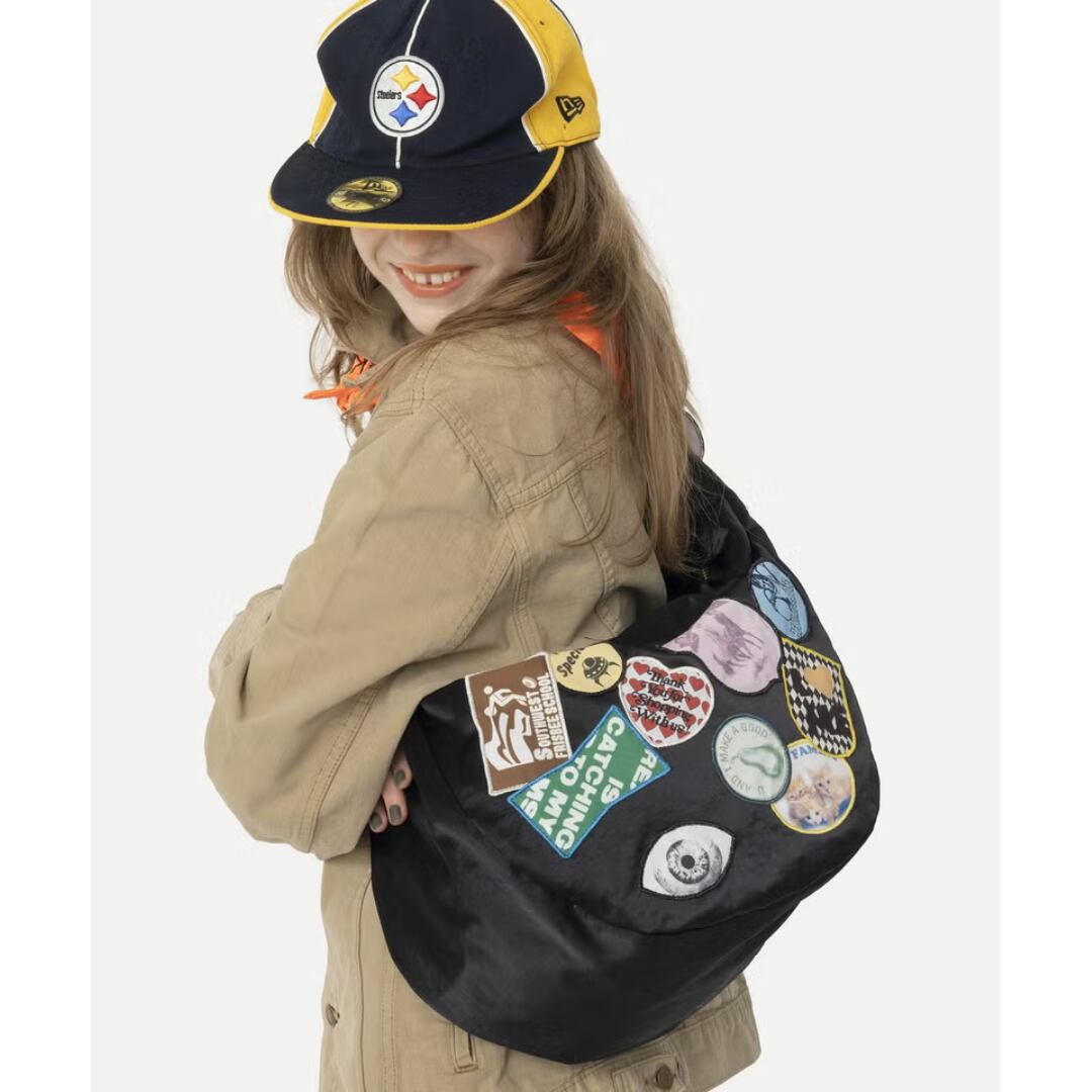 Mrs.ROSEがコレクションしていた、色々な所で巡り合ったお気に入りのワッペン達を手持ちのナイロンバッグにペタペタカスタマイズしたイメージです。