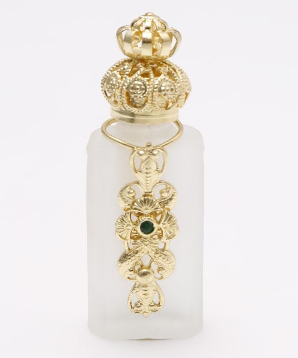 ガラス細工で有名なチェコで作られた、お花のように繊細な装飾に、宝石を散りばめたようなゴージャスな香水瓶です。