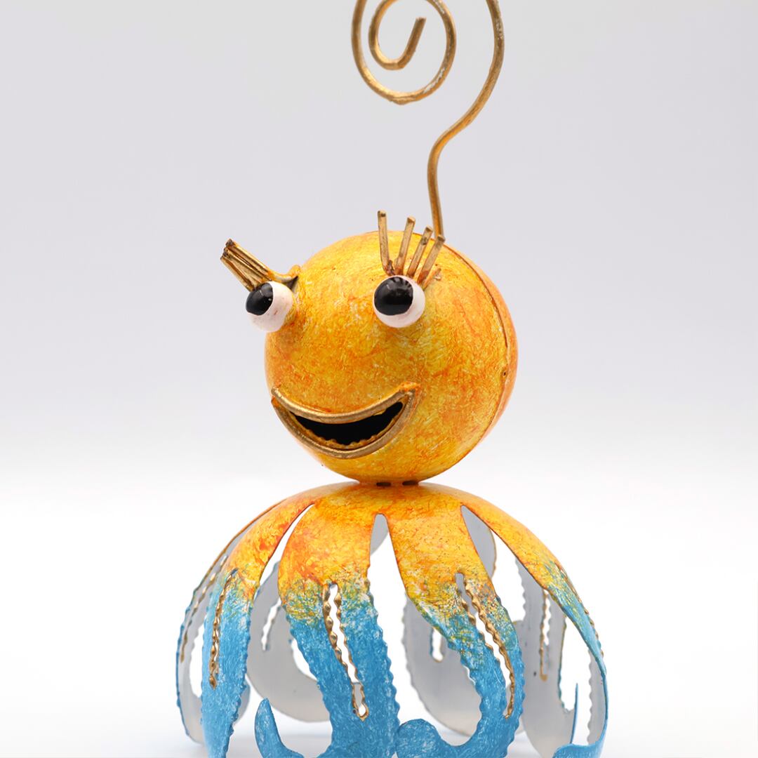 愛嬌たっぷりでかわいいタコのブリキのカードホルダーです。